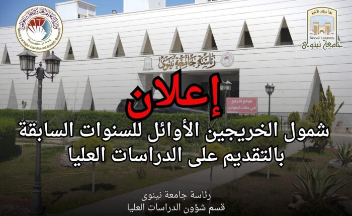 تتطلع جامعة نينوى أن تكون صرحا علميا رائدا بما يتوافق مع أفضل المعايير العالمية.