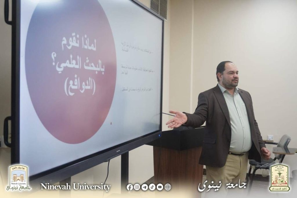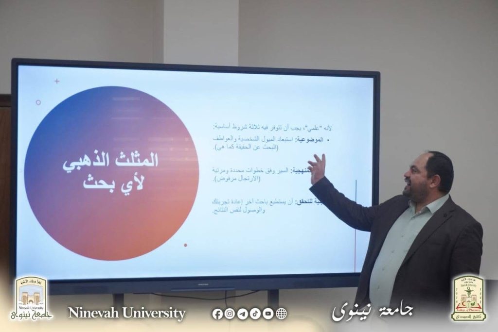 ضمن نشاطات وحدة التعليم المستمر وفي إطار سعيها المتواصل لترسيخ ثقافة البحث العلمي الرصين وتعزيز قدرات الباحثين، أقامت كلية الصيدلة / جامعة نينوى محاضرة علمية حضورية بعنوان «أساليب البحث العلمي»، وذلك يوم الأحد الموافق