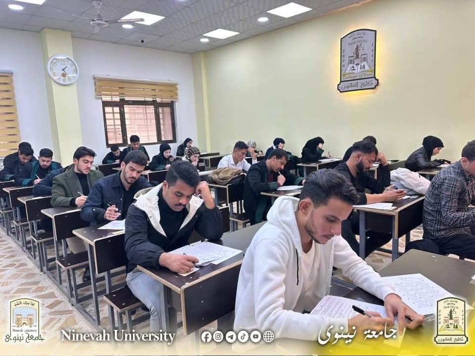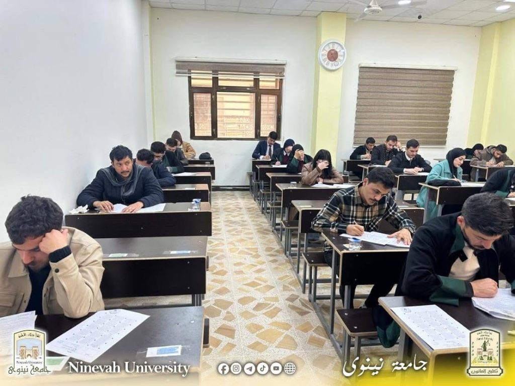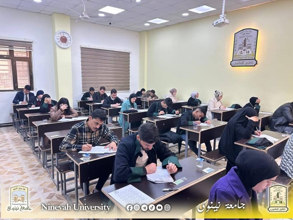 اختُتمت في كلية القانون بجامعة نينوى، اليوم الخميس الموافق 15 / 1 / 2026، امتحانات الفصل الدراسي الأول للعام الدراسي 2025–2026، وسط أجواء اتسمت بالانضباط والتنظيم العالي، وبما عكس الجهود المبذولة من الطلبة والملاكات التدريسية والإدارية.