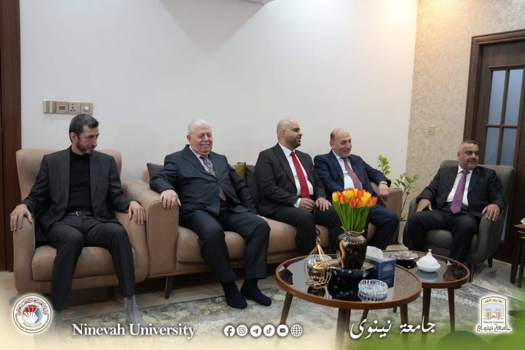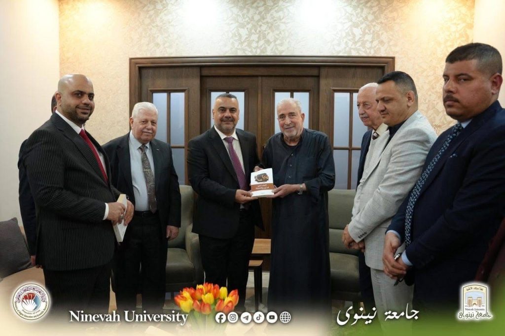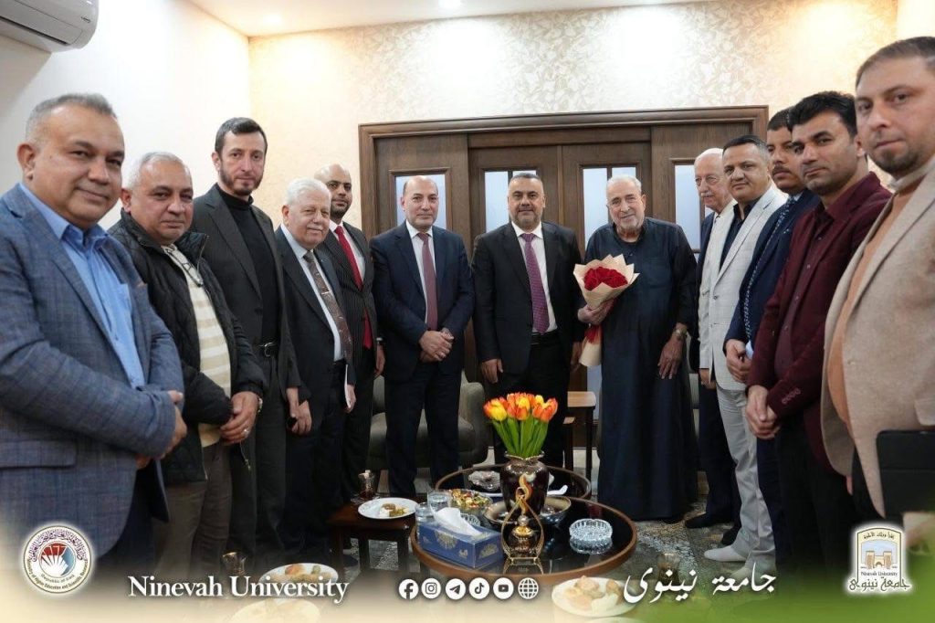 في سياق نهجها المؤسسي الهادف إلى ترسيخ الصلة الحيّة بين الجامعة ومرجعياتها الفكرية والثقافية، أجرى السيد رئيس جامعة نينوى الأستاذ الدكتور أسامة المشهداني والوفد المرافق له زيارةً علميةً وثقافيةً إلى بيت العلّامة والمفكر الإسلامي الأستاذ الدكتور عماد الدين خليل في الموصل، يرافقه وفد من أساتذة الجامعة، وذلك ضمن سلسلة زيارات تُعنى بالتواصل مع أعلام المدينة وروّادها الأوائل.