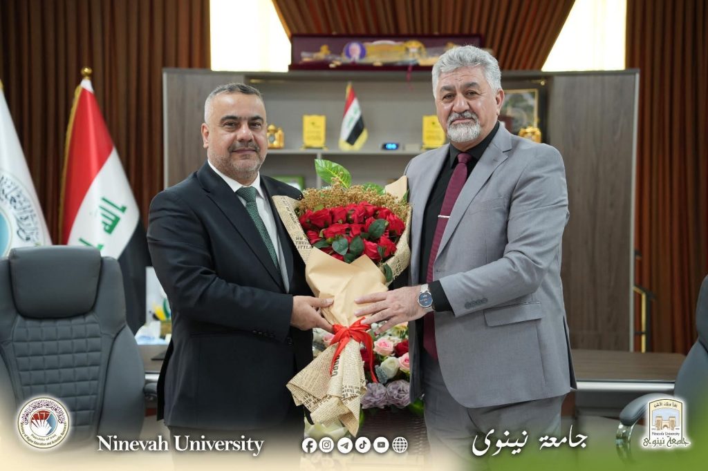 وكان في استقبال رئيس جامعة نينوى عددٌ من منتسبي الجامعة، حيث عُقد لقاءٌ رسمي جرى خلاله التداول في مجموعة من القضايا التي تهم مستقبل الجامعات في العراق، ولاسيّما ما يتعلق بتعزيز جودة التعليم العالي، وتطوير البحث العلمي، وتبادل الخبرات الأكاديمية والإدارية بين المؤسسات الجامعية.