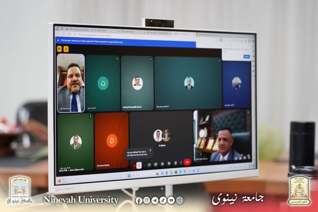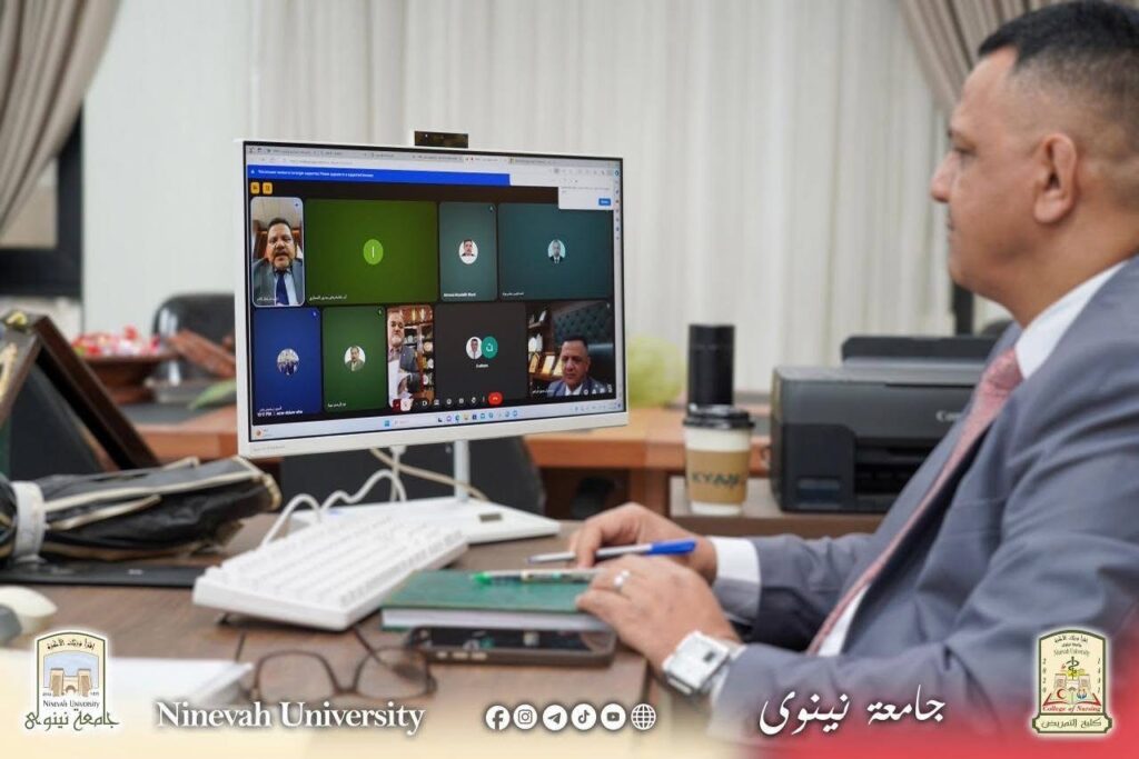 السيد عميد كلية التمريض بجامعة نينوى يشارك في اجتماع إلكتروني للجنة عمداء كليات التمريض في العراق