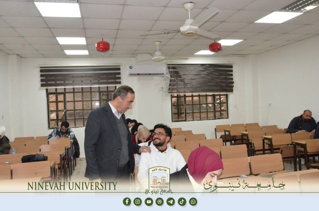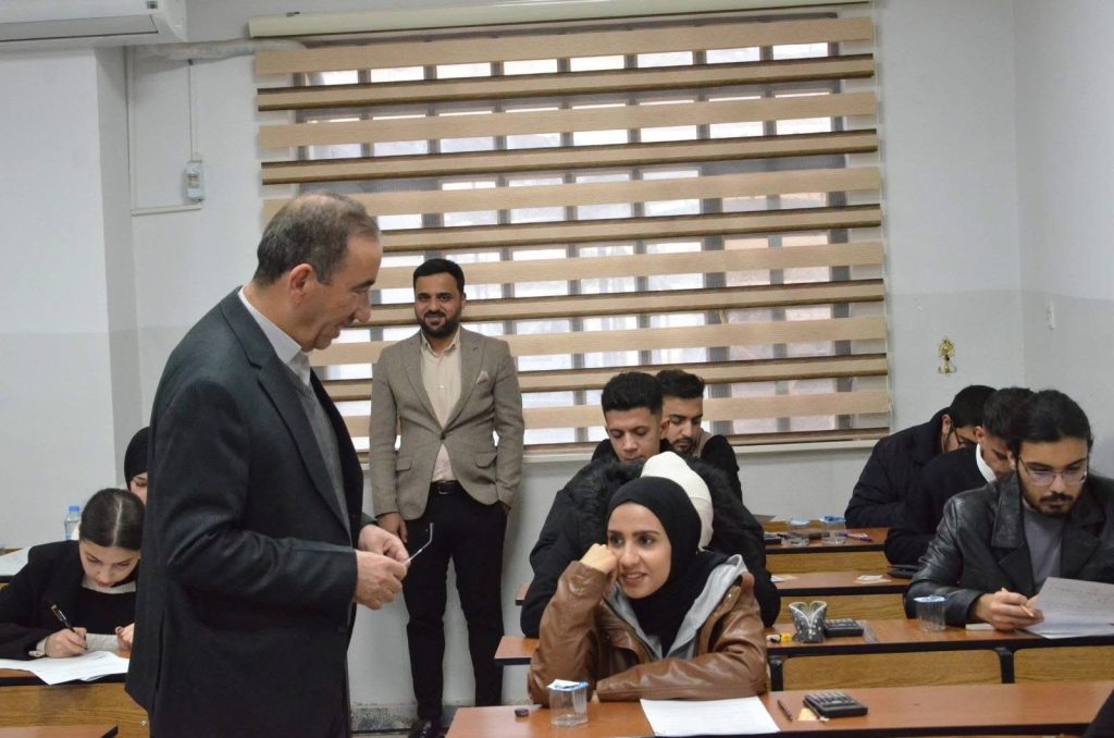 وخلال جولته الميدانية في القاعات الامتحانية، اطّلع السيد العميد على نماذج الأسئلة وآلية تنظيم الامتحانات، مشيدًا بالجهود الكبيرة التي تبذلها اللجان الامتحانية والكوادر التدريسية والإدارية، والتي كان لها دور بارز في تهيئة متطلبات الامتحانات وإنجاحها.