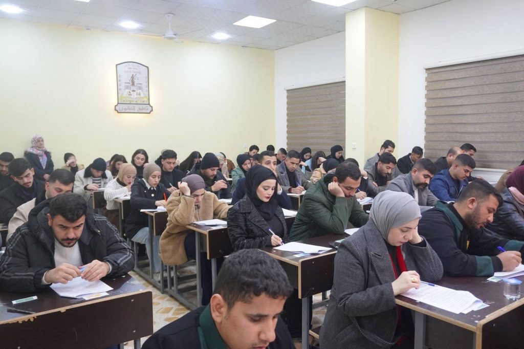 انطلقت صباح اليوم الاحد الموافق 28/12/2025 في كلية القانون امتحانات نهاية الكورس الأول للمراحل فوق الأولى للعام الدراسي 2025–2026، في الدراستين الصباحية والمسائية، وسط أجواء تنظيمية هادئة واستعدادات لوجستية متكاملة عكست حرص عمادة الكلية على توفير بيئة امتحانية ملائمة تسهم في أداء الطلبة لامتحاناتهم بكل يسر وانسيابية.