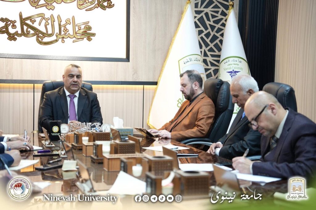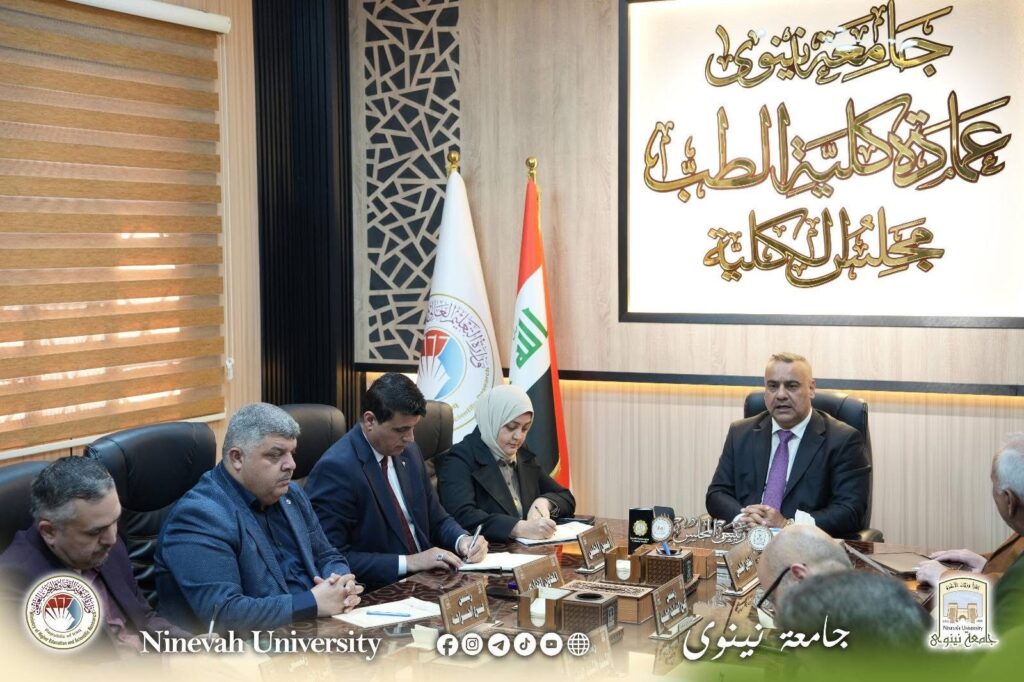 برئاسة السيد رئيس جامعة نينوى الأستاذ الدكتور أسامة المشهداني، عُقد اجتماع مجلس كلية الطب بحضور السيد عميد الكلية الأستاذ الدكتور مؤمن الدبوني، إلى جانب أعضاء الهيئة التدريسية.