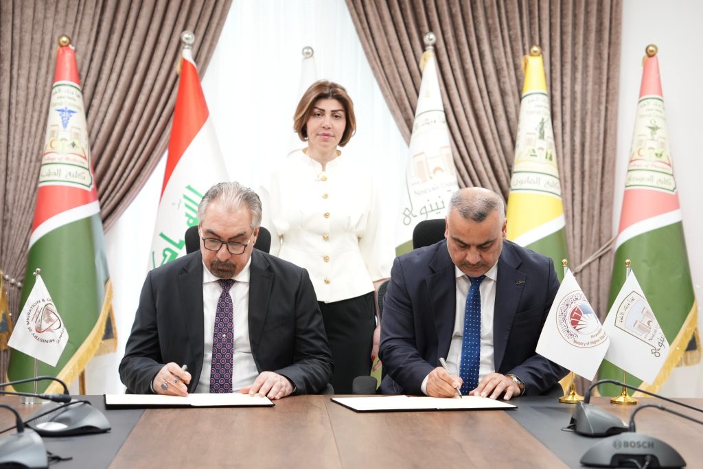 من جانبه، أعرب السيد رئيس جامعة نينوى الأستاذ الدكتور أسامة إسماعيل المشهداني عن اعتزازه بهذه الشراكة المثمرة، مبينًا أن الجامعة تمتلك طاقات بحثية وأكاديمية قادرة على تقديم دراسات ومبادرات علمية تسهم في تطوير برامج الوزارة ودعم شريحة المهجرين والعائدين إلى مناطقهم.