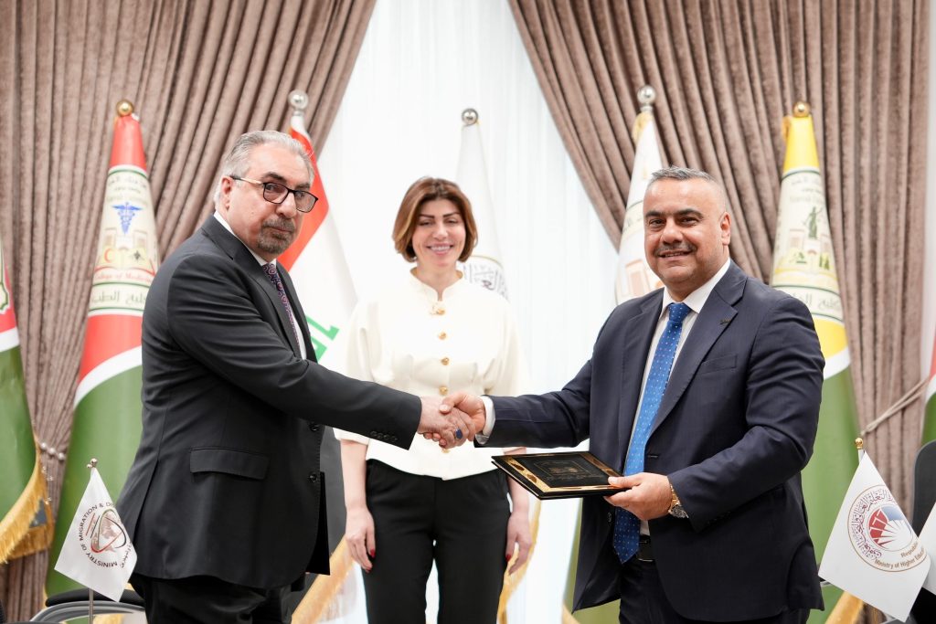 وفي ختام مراسم التوقيع، قدّم رئيس الجامعة درع جامعة نينوى إلى معالي الوزيرة، تعبيرًا عن التقدير والتعاون المشترك، وتم التأكيد على وضع خطة تنفيذية مشتركة لمتابعة بنود المذكرة وتحويلها إلى برامج عملية على أرض الواقع.