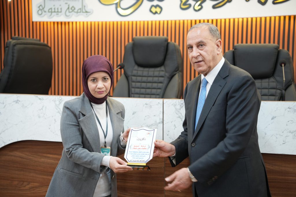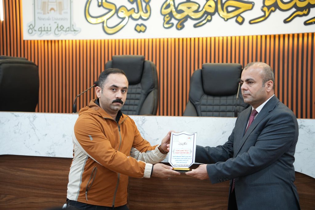 وفي ختام الفعاليات، قدّمت جامعة نينوى دروع المشاركة للشركات والمؤسسات المشاركة، إضافة إلى توزيع شهادات تقديرية على أعضاء اللجنة المنظمة، مؤكدة استمرارها في بناء شراكات استراتيجية مع مختلف الجهات بما يسهم في تمكين الشباب وتطوير مهاراتهم المهنية.
