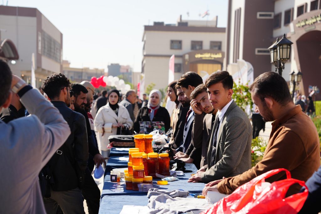 وتبع الكلمات افتتاح أجنحة المعرض، التي ضمّت مجموعة من الأعمال الريادية والفنية لطلبة وخريجي الجامعة، في إطار دعم المواهب والمشاريع الناشئة. ويهدف المعرض إلى فتح آفاق للعمل والتدريب أمام الخريجين، وربطهم بشكل مباشر بسوق العمل، فضلًا عن تعزيز التواصل بين المؤسسات المشاركة والطلبة، وتقديم فرص متنوعة للوظائف وبرامج التدريب.