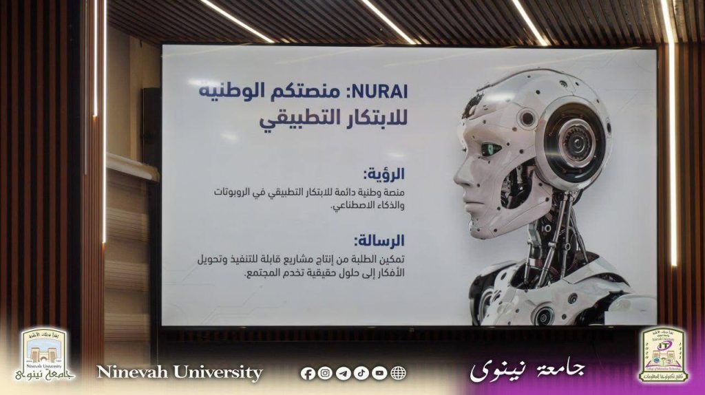 برعاية السيد رئيس جامعة نينوى الأستاذ الدكتور أسامة المشهداني المحترم، وبإشراف السيدة عميد كلية تكنولوجيا المعلومات الأستاذ الدكتورة منار كشمولة، نظّمت جامعة نينوى يوم الاثنين الموافق 2 آذار 2026 ورشة عمل تخصصية بعنوان “البطولة الوطنية الجامعية للروبوتات وتطبيقات الذكاء الاصطناعي”، وذلك في إطار دعمها المتواصل للأنشطة العلمية التي تواكب التطورات التكنولوجية الحديثة.