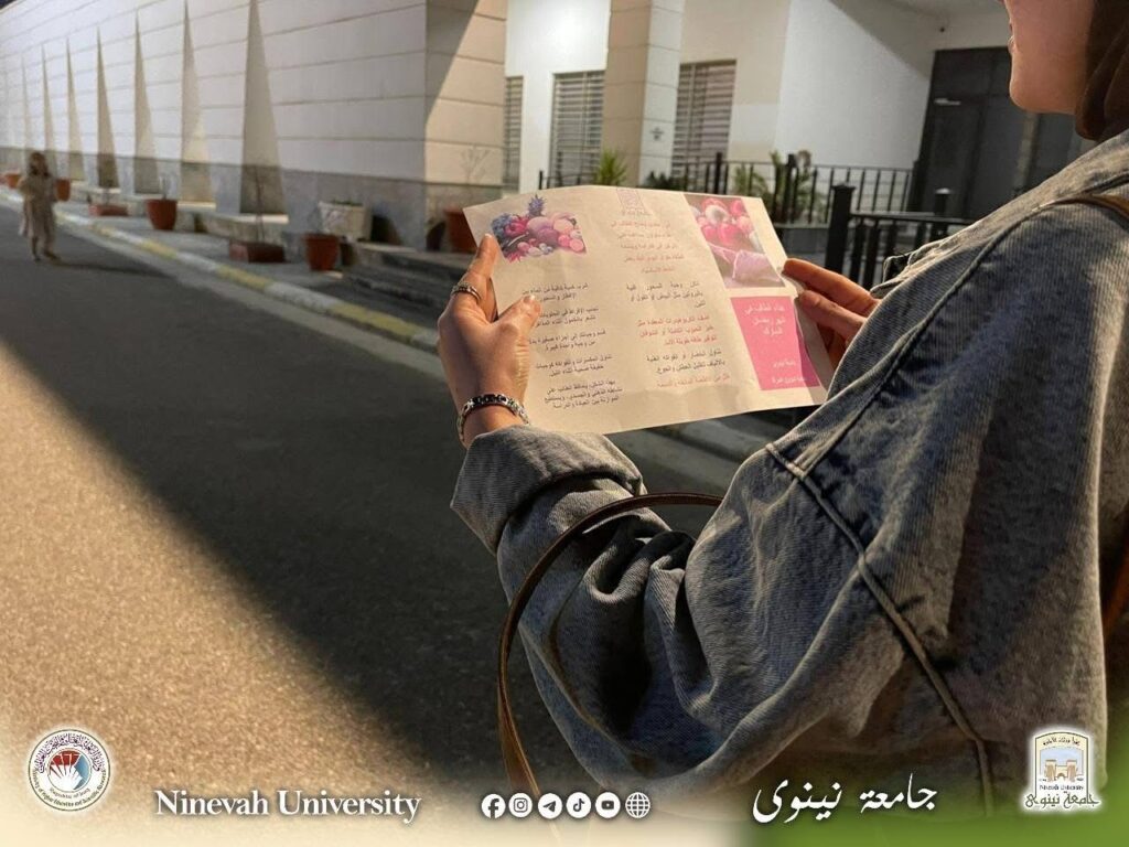 ضمن اهتمام جامعة نينوى بتعزيز الوعي الصحي لدى طلبتها، نظّمت وحدة شؤون المرأة بالتعاون مع قسم ضمان الجودة والأداء الجامعي نشاطًا توعويًا لطالبات الأقسام الداخلية، تضمّن محاضرة تثقيفية حول الغذاء الصحي للطالب في شهر رمضان.