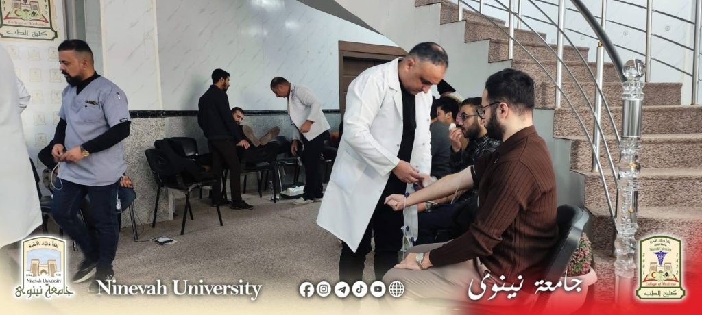 برعاية السيد رئيس جامعة نينوى الأستاذ الدكتور أسامة المشهداني ومتابعة السيد عميد كلية الطب – جامعة نينوى الاستاذ الدكتور مؤمن جنيد ، نظّمت الكلية حملة للتبرع بالدم بمشاركة فاعلة من منتسبيها وطلبتها، جسّدت أسمى معاني العطاء الإنساني والتكافل الاجتماعي، وتحولت إلى مشهدٍ نابض بالخير والمسؤولية.