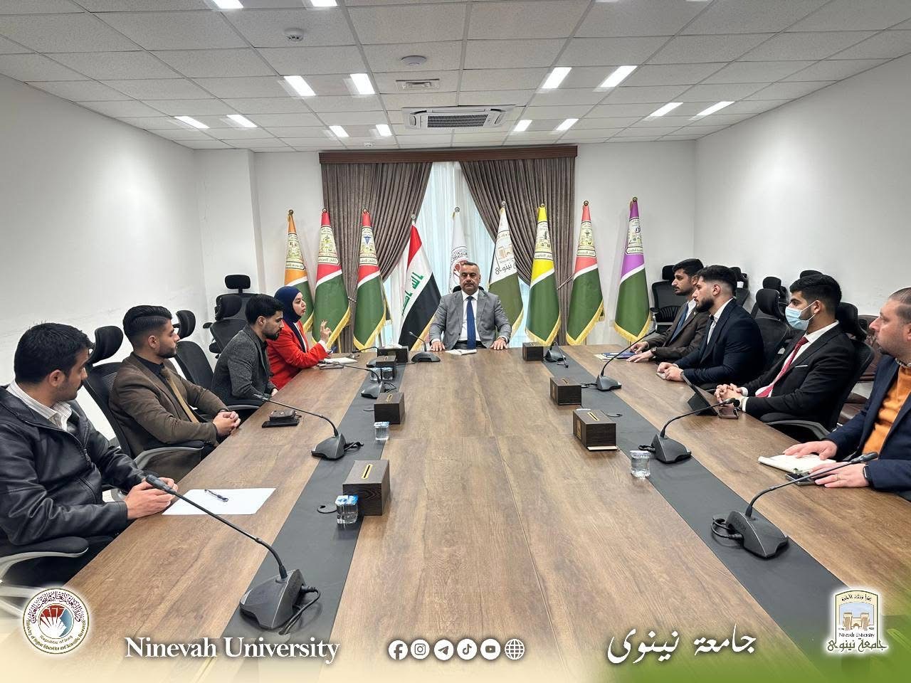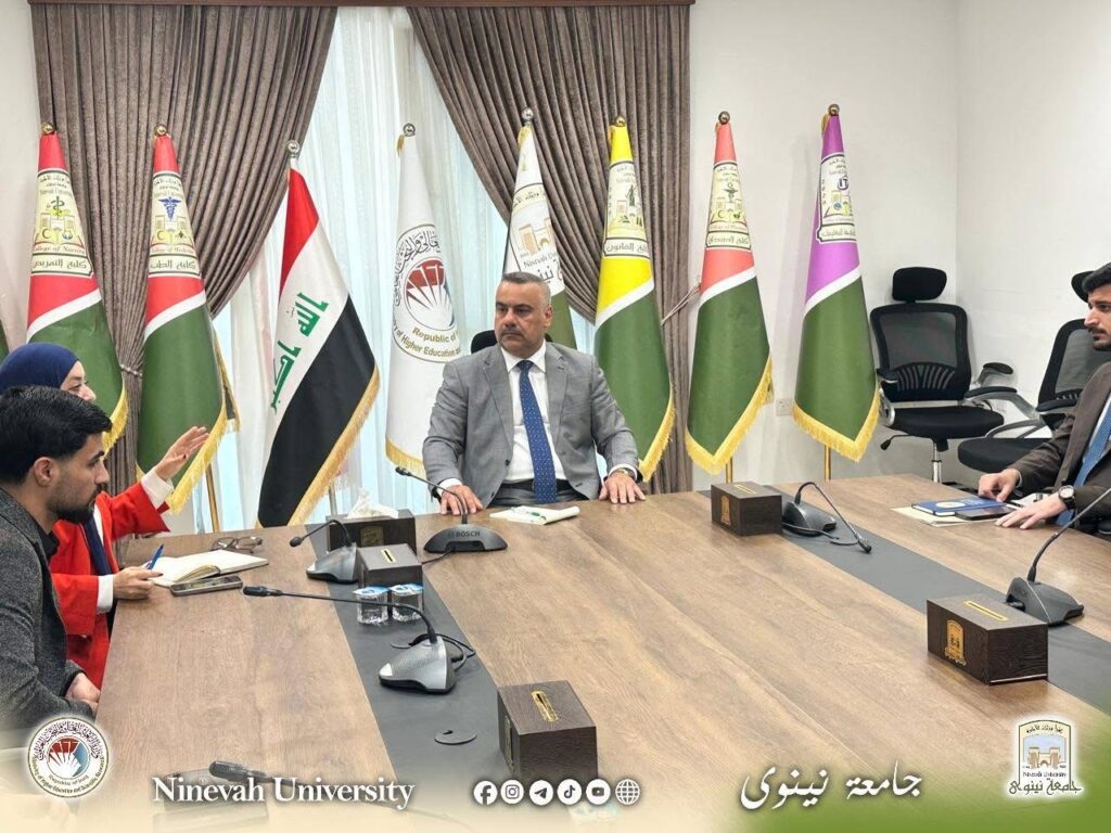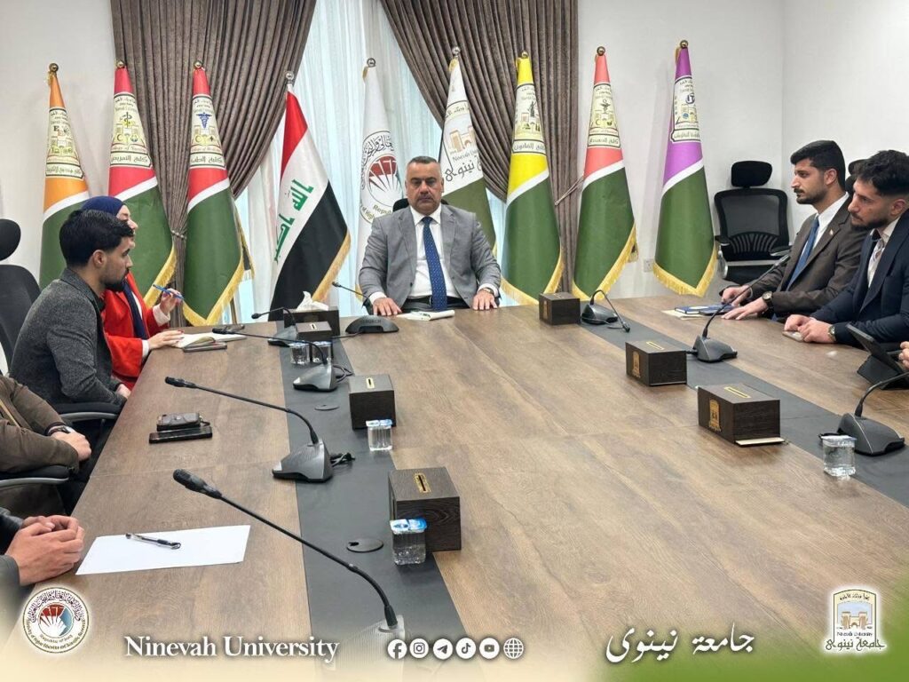 في إطار توجهات جامعة نينوى لتعزيز دور الطلبة وتمكينهم من المشاركة الفاعلة في الحياة الجامعية، التقى السيد رئيس الجامعة بممثلي طلبة الكليات، بحضور الدكتورة تمارة رياض مدير قسم النشاطات الطلابية.