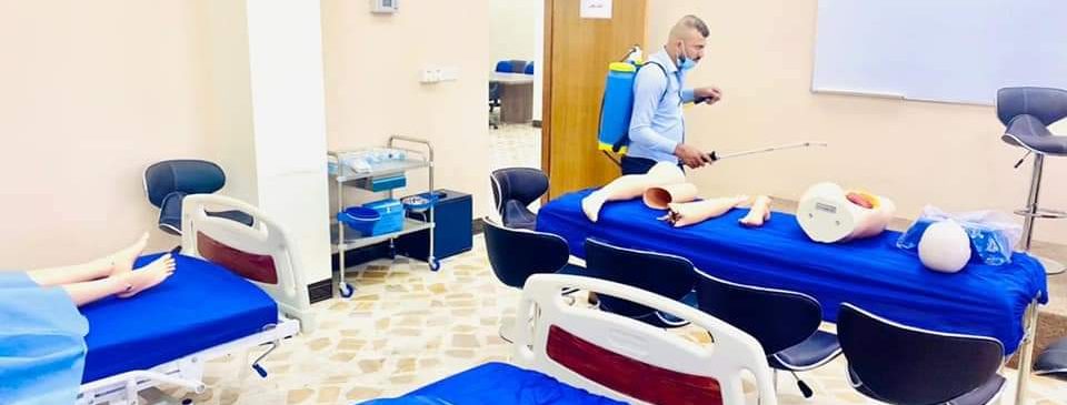 رئاسة جامعة نينوى تجري حملة تعفير لابنية الجامعة
