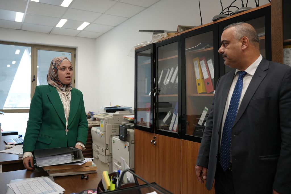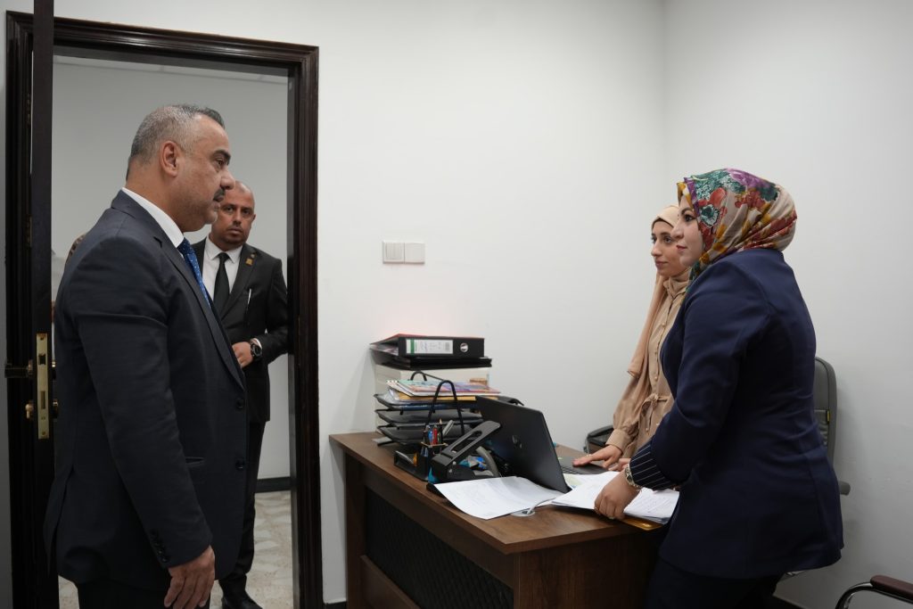 اطلع الدكتور المشهداني خلال جولته على سير العمل في الوحدات الإدارية، مستمعًا إلى ملاحظات الموظفين ومقترحاتهم لتطوير الأداء وتذليل المعوقات التي قد تواجه العمل اليومي.