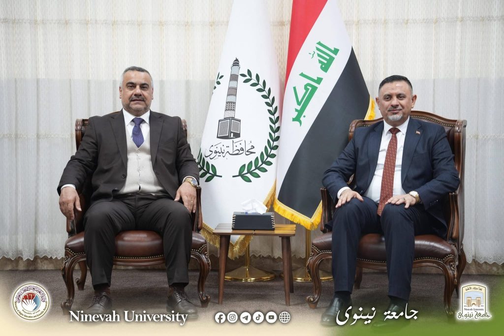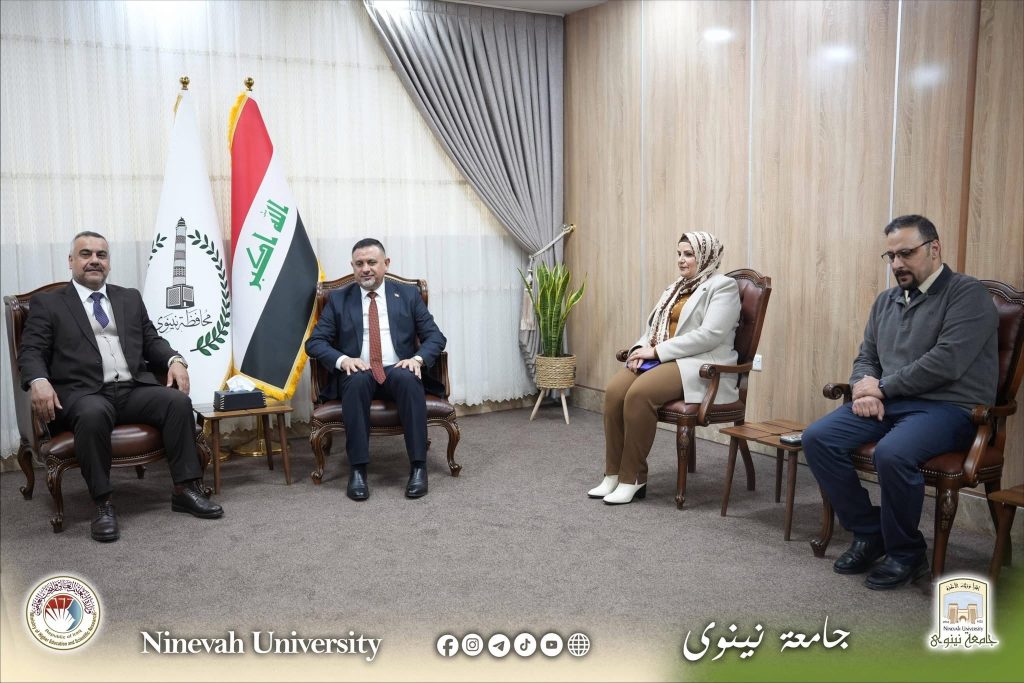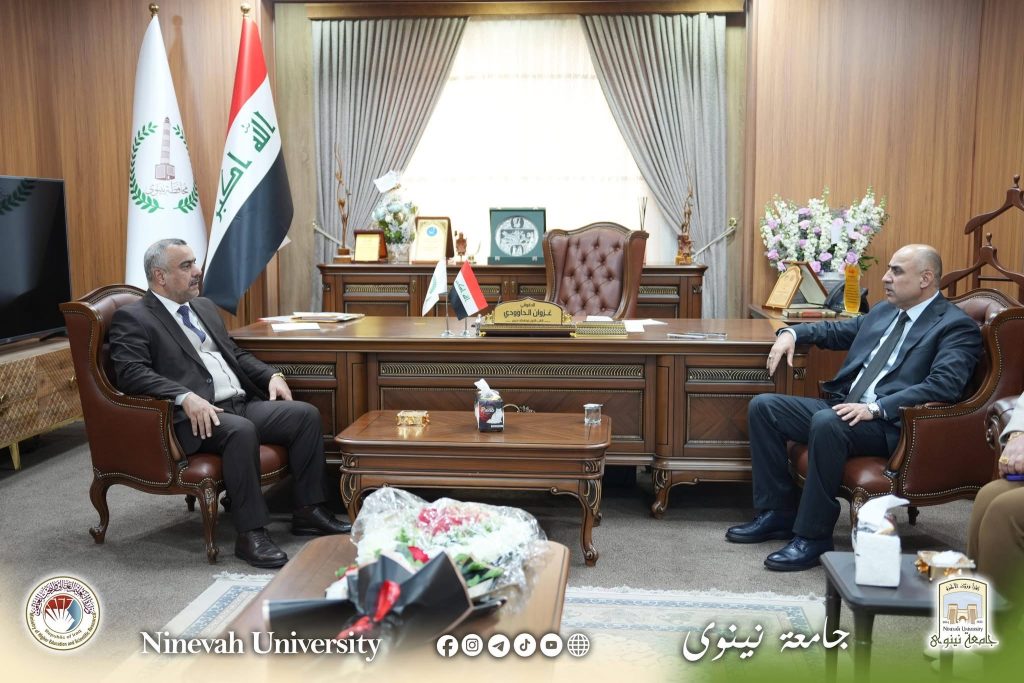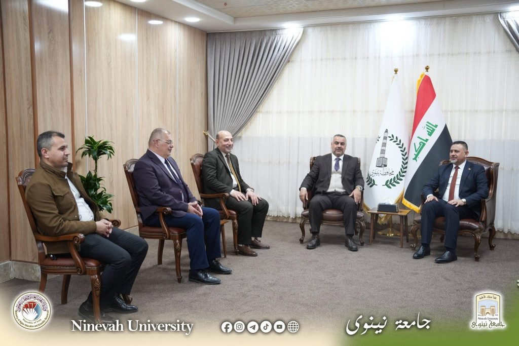 ضمن إطار تعزيز التعاون المؤسسي بين جامعة نينوى والحكومة المحلية، أجرى السيد رئيس جامعة نينوى الأستاذ الدكتور أسامة إسماعيل المشهداني زيارة رسمية إلى النائب الأول لمحافظ نينوى الحقوقي الأستاذ غزوان الداؤودي والنائب الفني لمحافظة نينوى السيد خالد عبد الكريم العبيدي، يرافقه وفد جامعي رفيع.
