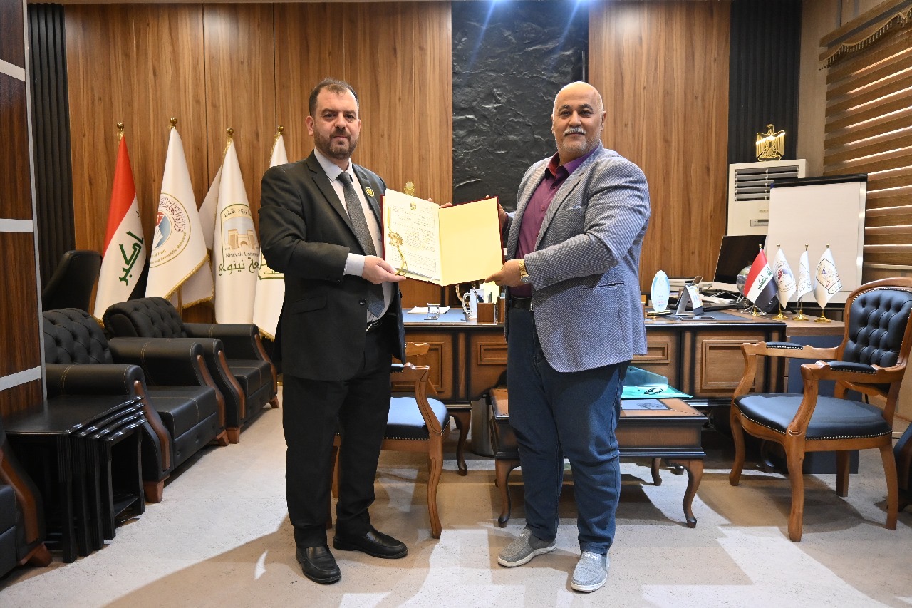 رئيس جامعة نينوى يهنئ عميد كلية الطب لحصوله على براءة اختراع في المجال الطبي