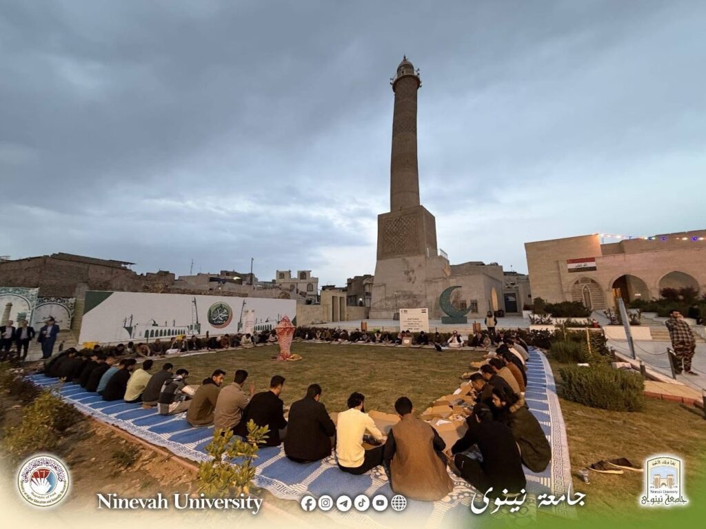 وأُقيمت مأدبة الإفطار في رحاب الجامع الكبير النوري، في أجواء رمضانية مفعمة بروح التكافل والتآخي، وبحضور عدد من طلبة الجامعة المشاركين.