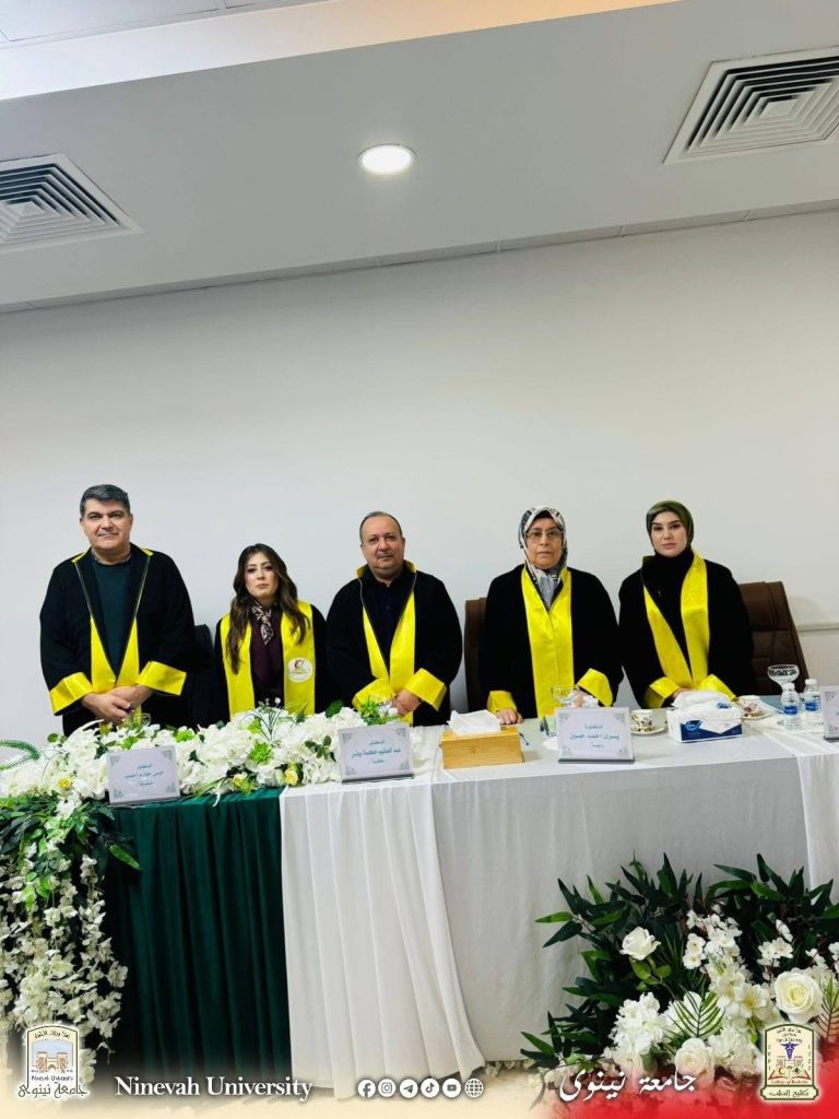 وشارك في هذه اللجان كل من الأستاذ المساعد الدكتورة يسرى أحمد حسين (استشاري طب الأطفال) والأستاذ المساعد الدكتور علي عادل شريف (استشاري طب الأطفال)، حيث تمّت مناقشة أطروحة الطالب حارث عبدالغني محمد الموسومة “تحفيز العصب المبهم عند الأطفال في مدينة الموصل”، وأطروحة الطالبة خمائل داؤد سليمان الموسومة “العلاج بعقار ديفيراسيروكس مقابل ديفيروكسامين لدى المرضى المصابين بفرط الحديد في حالات الثلاسيميا الكبرى”، وهما من المتدربين في المجلس العربي لطب الأطفال.