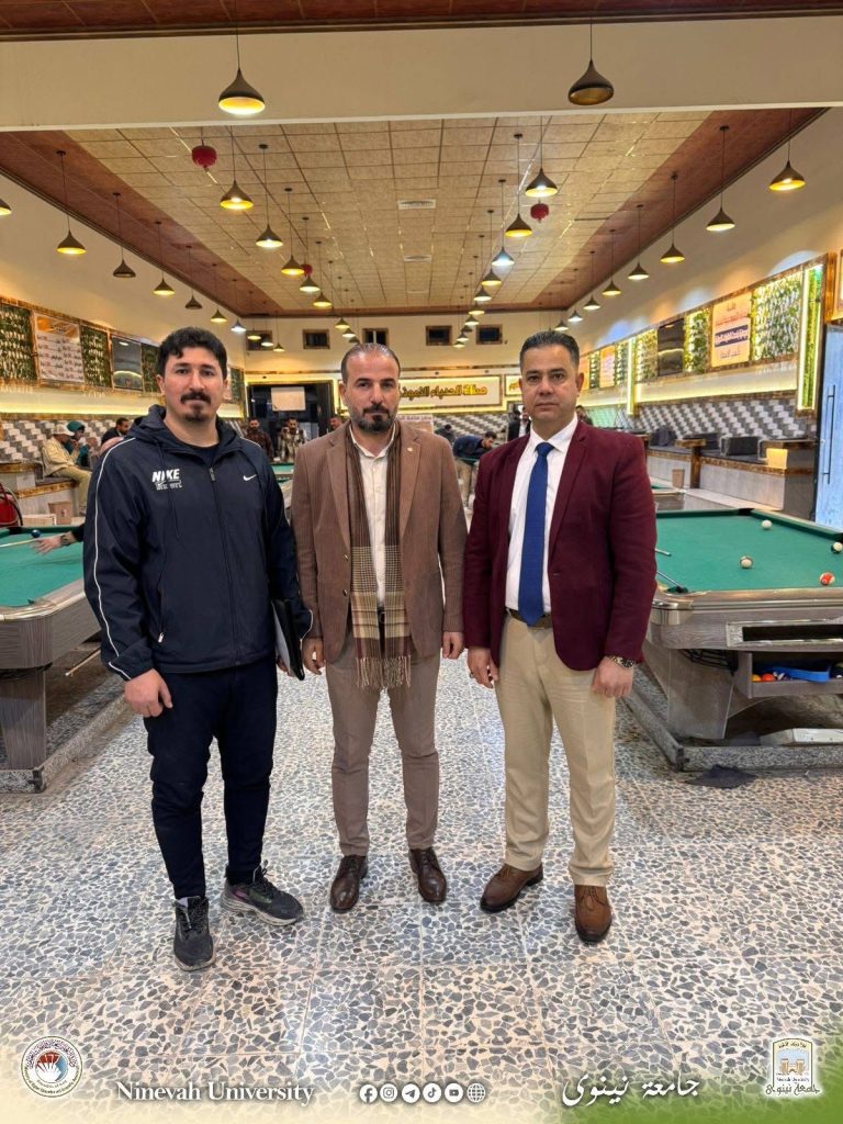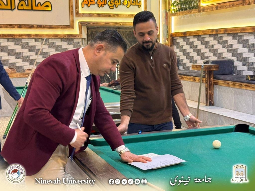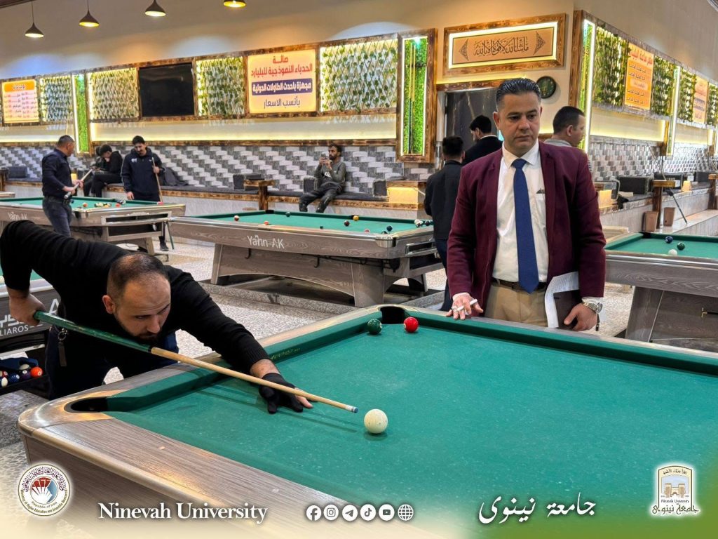برعاية السيد رئيس جامعة نينوى نظّم قسم النشاطات الطلابية بطولة البلياردو الخاصة بتدريسيي ومنتسبي الجامعة، في أجواء سادتها المنافسة الشريفة وروح الفريق الواحد، بما يعكس حرص الجامعة على تعزيز التواصل الإيجابي وترسيخ ثقافة العمل الجماعي بين ملاكاتها.