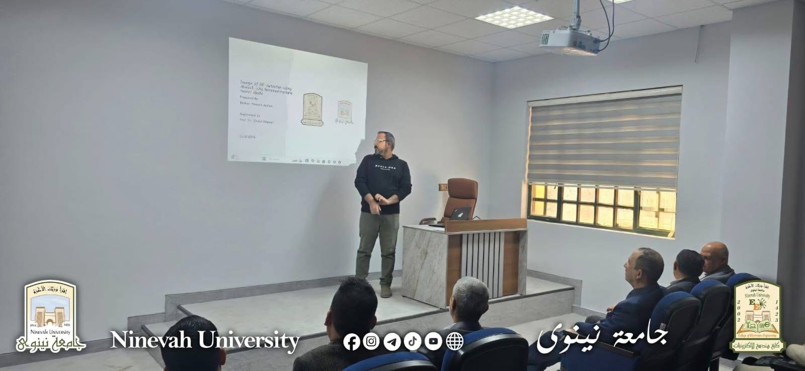 جرت الحلقة يوم الأربعاء الموافق ١١-٣-٢٠٢٦ عند الساعة العاشرة صباحًا، وشملت الجلسة عرض ثلاثة بحوث في اختصاص هندسة الإلكترونيك، حيث تمت مناقشة تطور الخطط البحثية ونسب الإنجاز لطلبة الدراسات العليا (الماجستير) في المرحلة البحثية، مع توجيه الأسئلة والاستفسارات من قبل اللجنة المشرفة على السمنار.