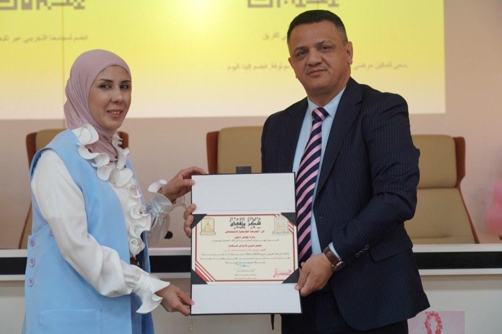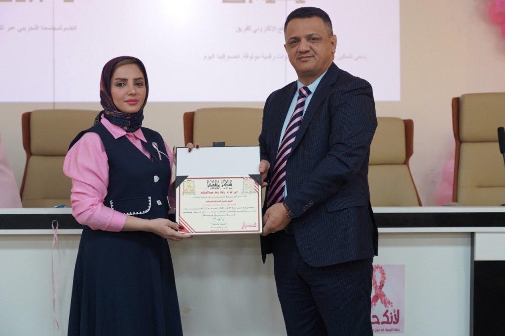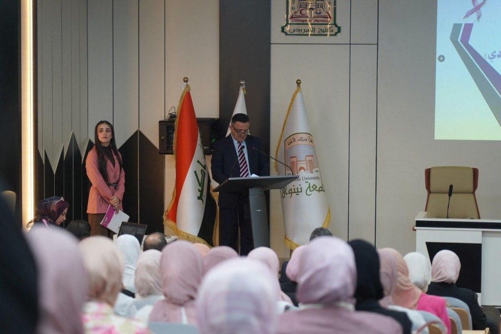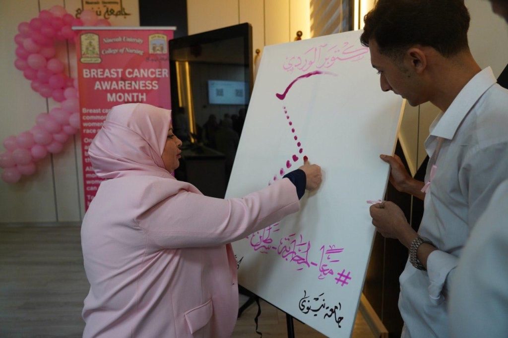 نظّمت كلية التمريض بجامعة نينوى ندوة توعوية متميزة بعنوان “الفحص الدوري للأمراض السرطانية – أكتوبر الوردي شهر التوعية بسرطان الثدي”، وذلك ضمن نشاطات وحدة شؤون المرأة في الكلية.جاءت هذه الندوة لتجسّد الدور الريادي لكلية التمريض في نشر الوعي الصحي بين شرائح المجتمع كافة، وإبراز أهمية الفحص المبكر كخط الدفاع الأول ضد سرطان الثدي.