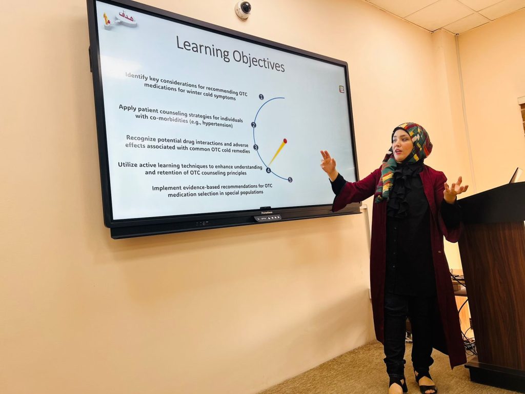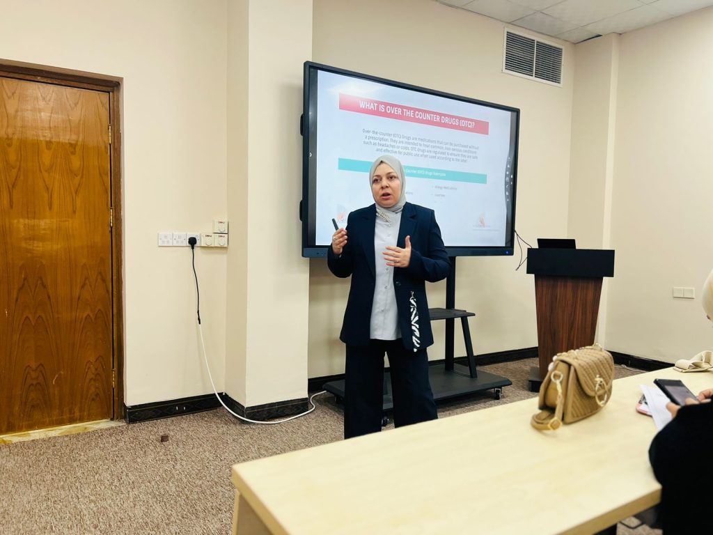 حاضر في الدورة كل من الدكتورة عبير منصور و م.م زهراء حازم، حيث قدما محاور علمية وتطبيقية تناولت الاستخدام الأمثل للأدوية التي تصرف دون وصفة طبية، فضلاً عن آليات التعامل الصحيح مع المرضى، والقدرة على وصف العلاج بشكل علمي دقيق، إضافة إلى تسليط الضوء على مخاطر الجرعات الزائدة والتداخلات الدوائية.