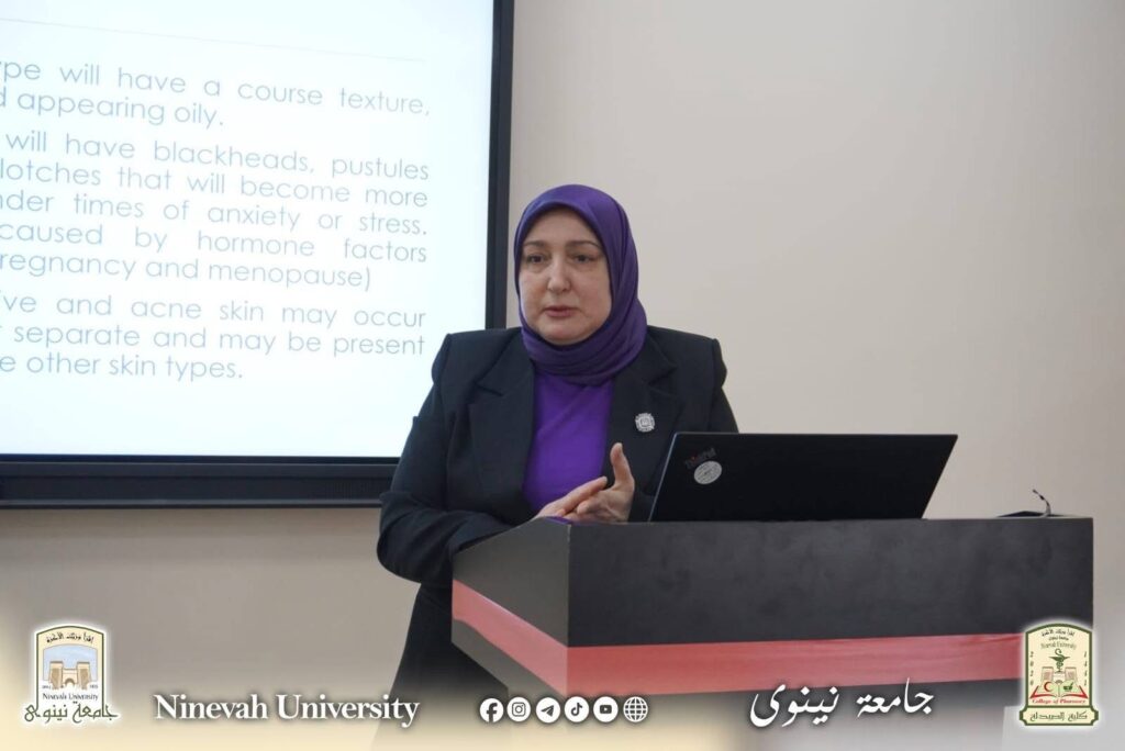 نظّمت كلية الصيدلة في جامعة نينوى، بالتعاون مع وحدة شؤون المرأة ووحدة التعليم المستمر، دورة تدريبية بعنوان (العناية بالصحة والجمال وانعكاساتها البيولوجية والدوائية كمدخل لتعزيز التوازن النفسي)، والتي اختتمت في يوم الثلاثاء الموافق 7 نيسان 2026 ولمدة ثلاثة أيام.