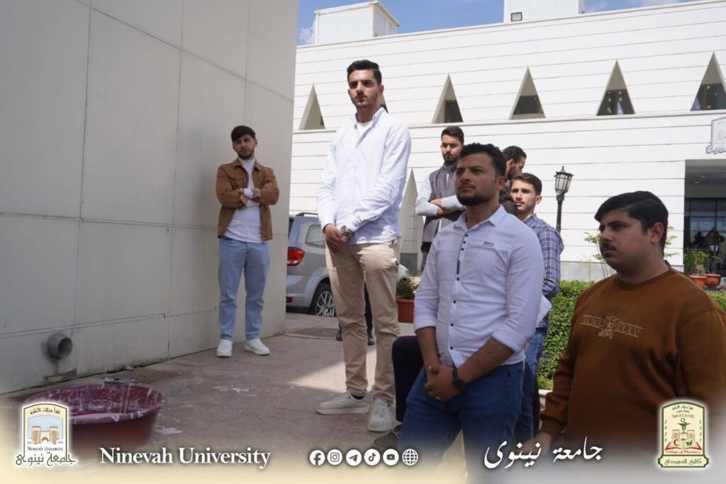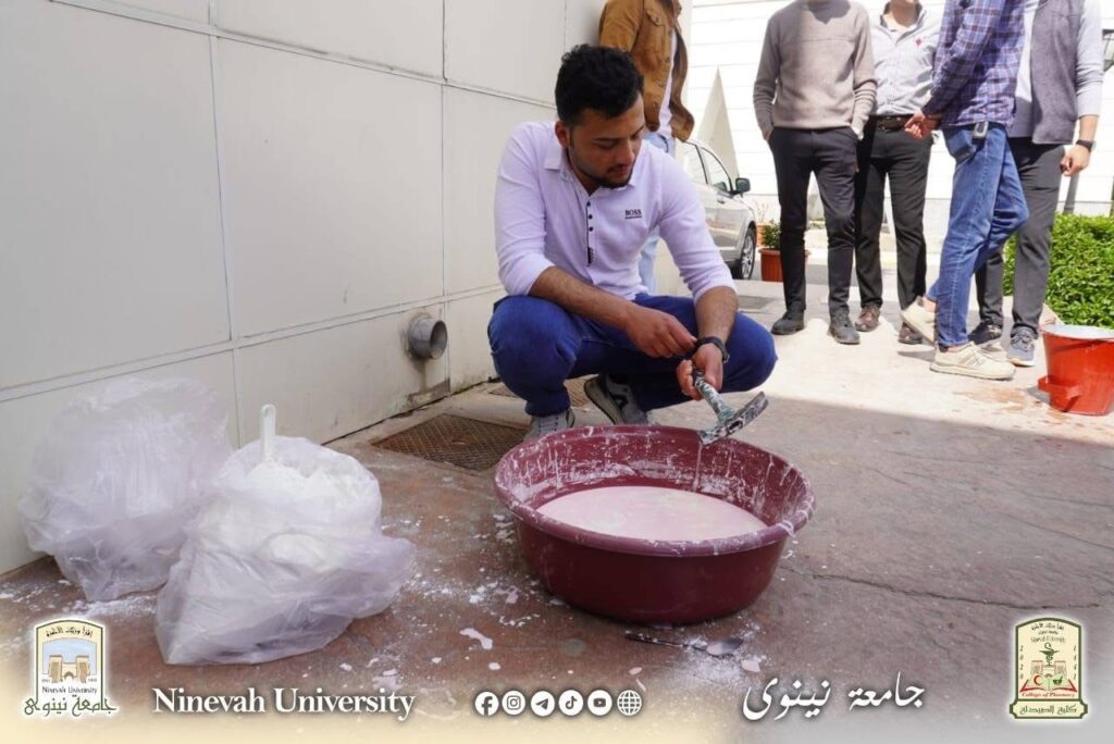 برعاية السيد رئيس جامعة نينوى الأستاذ الدكتور أسامة المشهداني وإشراف السيد عميد كلية الصيدلة الأستاذ الدكتور ميسر محمد القوطجي أجرت الكلية تجربة علمية تطبيقية في حديقة الكلية، بمشاركة عدد من طلبة الكلية، وذلك ضمن مفردات مادة الصيدلة الفيزياوية وبإشراف مدرس المادة الأستاذ المساعد الدكتور حسن سعد الديوه جي.