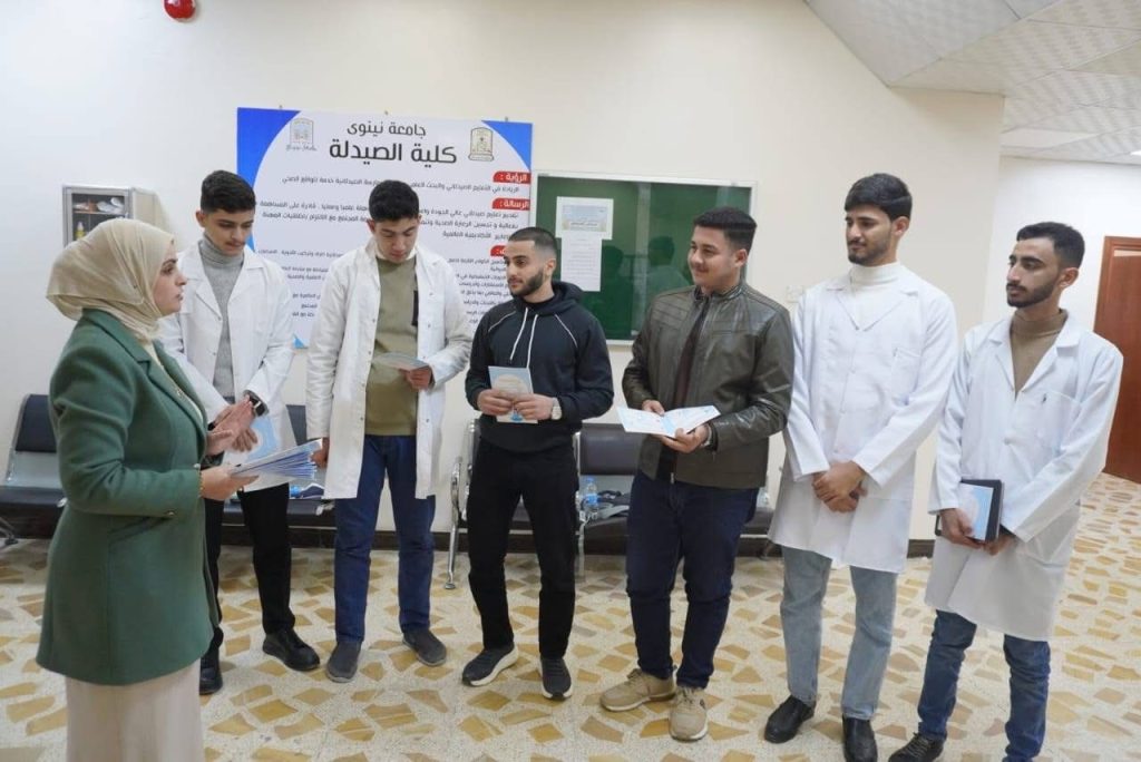 إشارة إلى توجيهات السيد رئيس الجامعة المحترم وبدعم من السيد عميد كلية الصيدلة في جامعة نينوى الأستاذ المساعد الدكتور ميسر محمد علي القوطجي، وضمن إطار حرص الكلية على تعزيز الدعم النفسي والأكاديمي لطلبتها خلال فترة الامتحانات، نُفِّذت يوم الأحد الموافق 14 كانون الأول 2025 حملة تطوعية توعوية، قامت بها مجموعة من منتسبات كلية الصيدلة، وبالتنسيق مع شعبة الإعلام في الكلية، والتي شملت زيارة عدد من كليات جامعة نينوى.