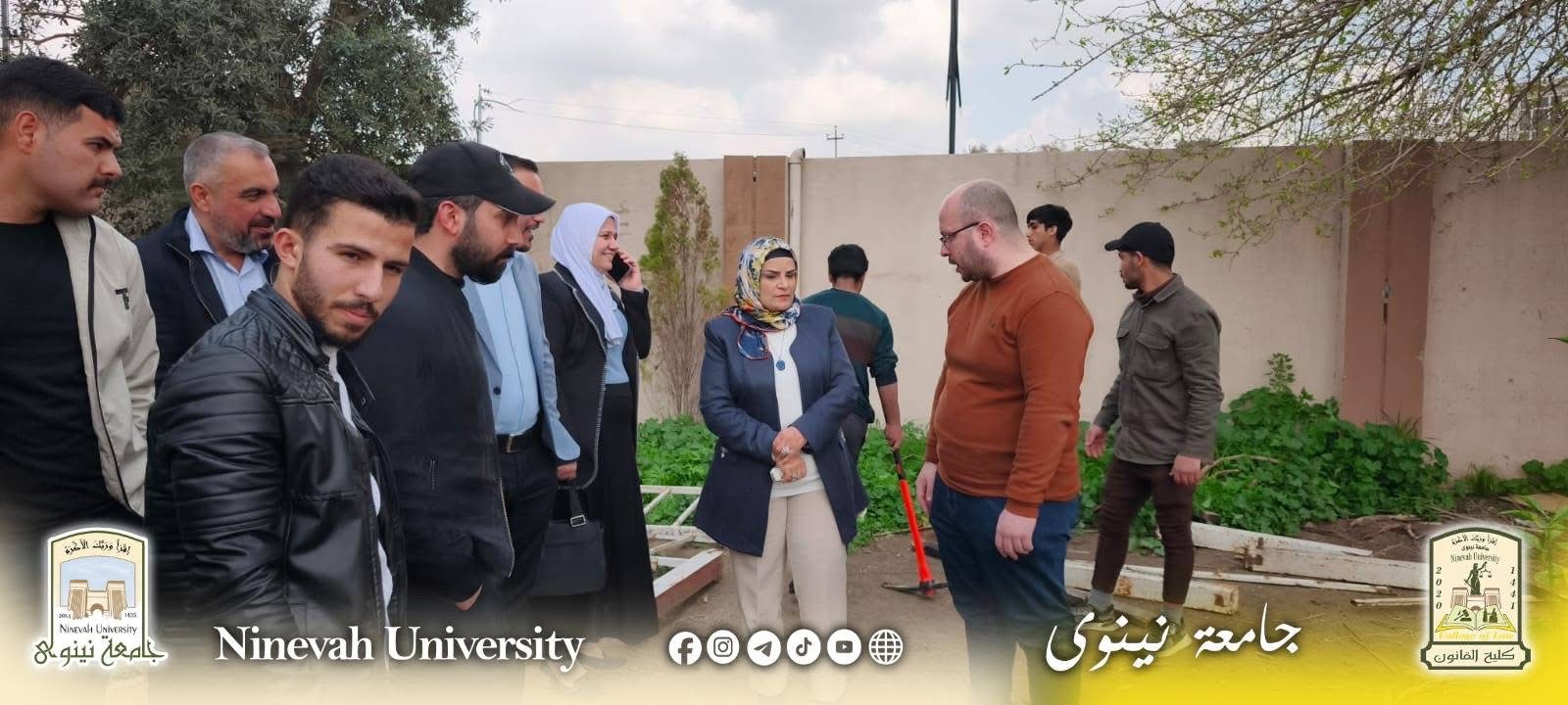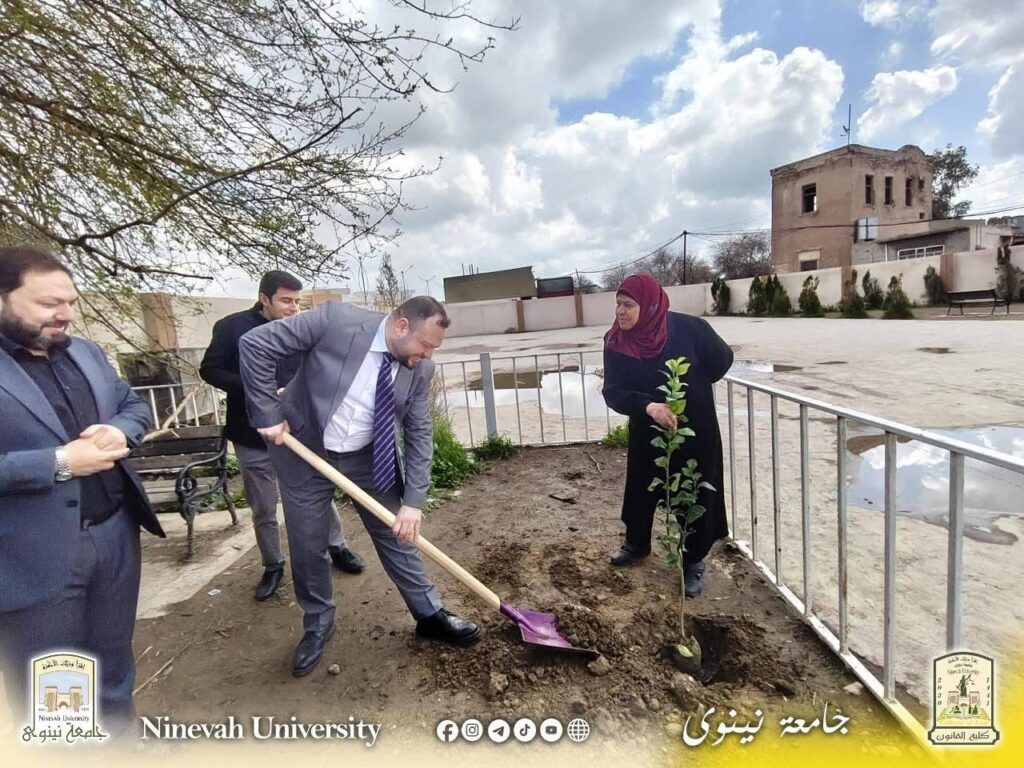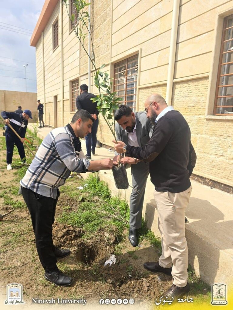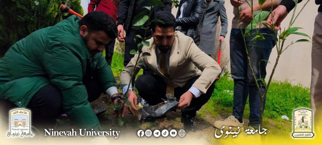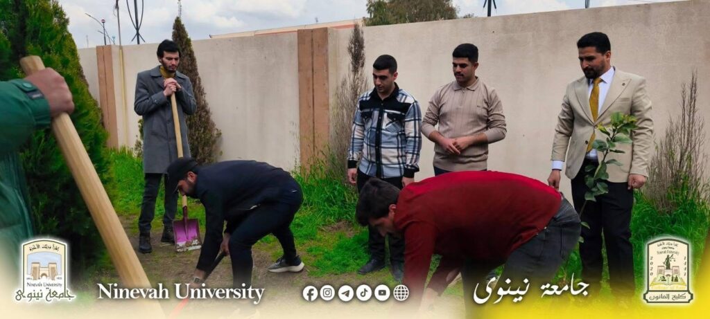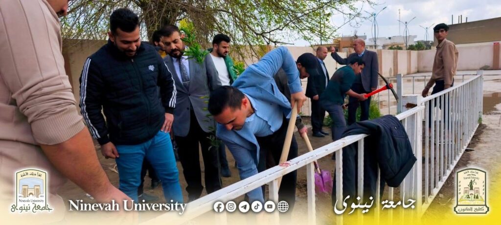 برعاية السيد رئيس جامعة نينوى الأستاذ الدكتور أسامة المشهداني وإشراف السيدة عميد كلية القانون الأستاذ الدكتورة زينة غانم العبيدي، وبحضور السيد معاون العميد للشؤون الإدارية والمالية الدكتور خلدون فاضل، وبمشاركة فاعلة من الكادرين التدريسي والإداري، نظّمت كلية القانون يوم الثلاثاء الموافق 16/3/2026 حملة تشجير واسعة استهدفت المتوسطة المركزية للبنين وإعدادية زيد بن الخطاب، تم خلالها غرس (60) شجرة.