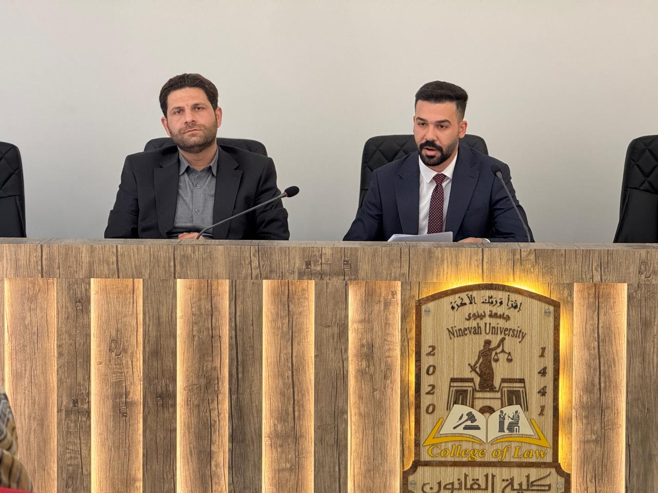 ألقى محاضرة الورشة التدريسي في فرع القانون العام م.د.زيد لقمان الزيدكي ، والتدريسي في فرع القانون الخاص م.م.فراس مشهل النعيمي.