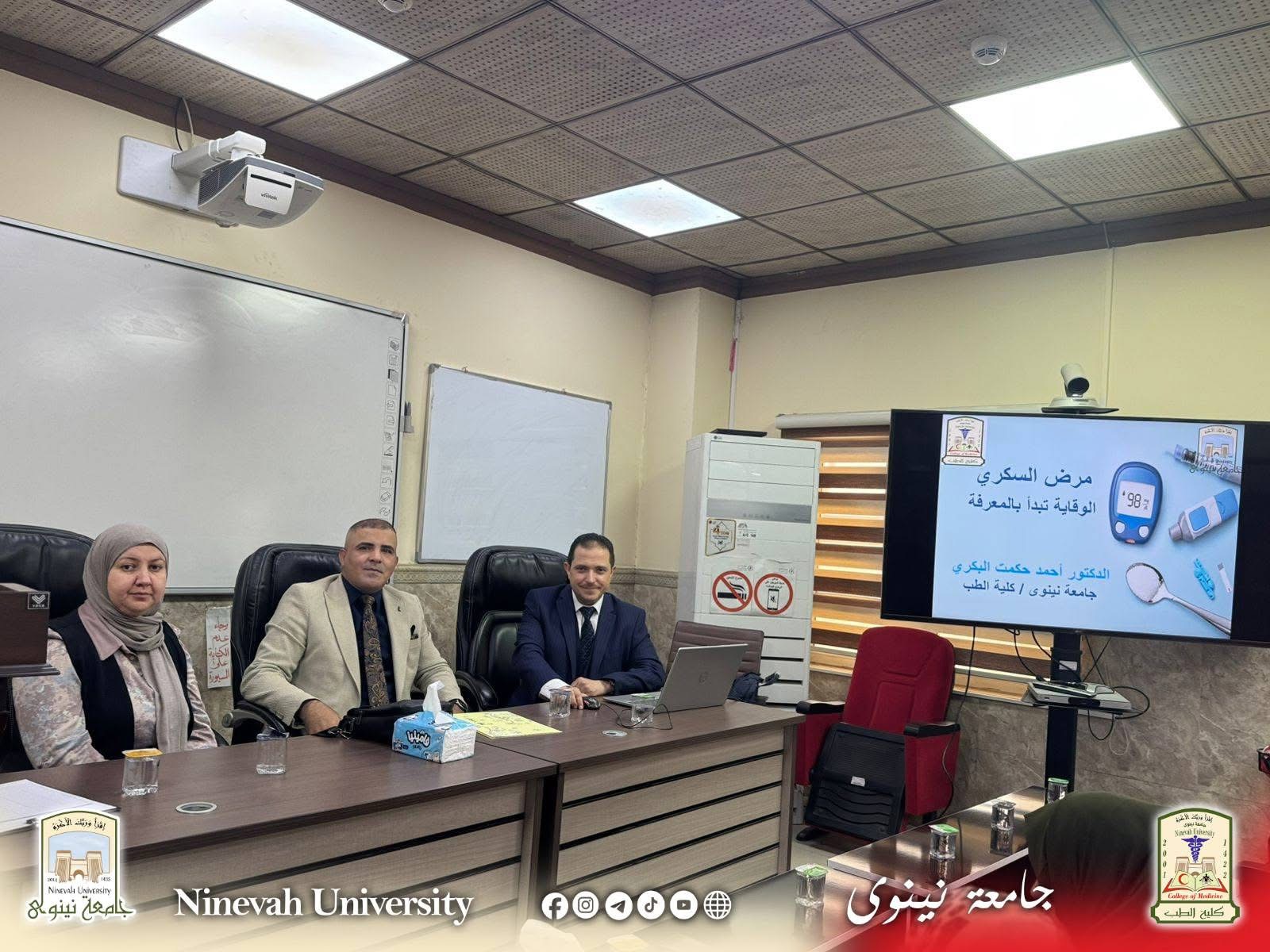 وشارك في المبادرة عدد من تدريسيي فرعي الطب الباطني والفسلجة الطبية من جامعة نينوى، إلى جانب الأستاذ المساعد الدكتور حسين إبراهيم العزاوي من كلية طب تكريت. وتضمّنت الفعالية محاضرة توعوية حول داء السكري، تناولت أسبابه ومضاعفاته وسبل الوقاية منه، فضلاً عن إجراء فحوصات سكر الدم وتقديم استشارات طبية مباشرة للمنتسبين.