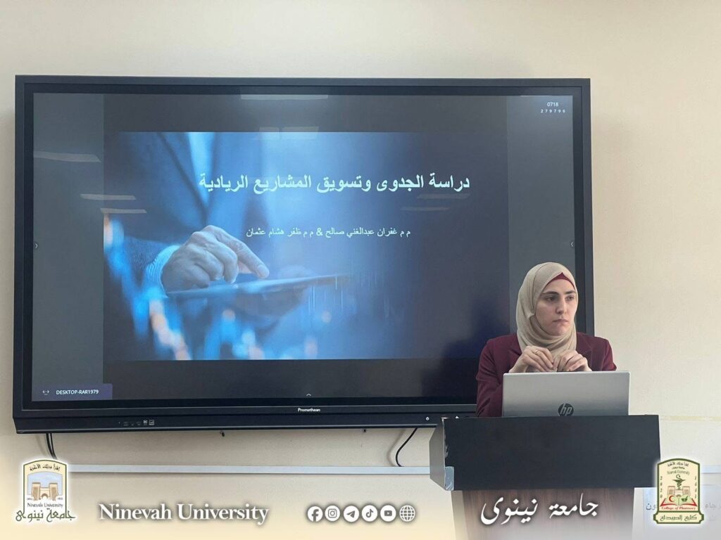 نظّمت كلية الصيدلة في جامعة نينوى، عبر وحدة الحاضنة التكنولوجية وبالتعاون مع وحدة التأهيل والتوظيف، ورشة عمل بعنوان “دراسة الجدوى وتسويق المشاريع الريادية”، بمشاركة عدد من الطلبة ومنتسبي الكلية.