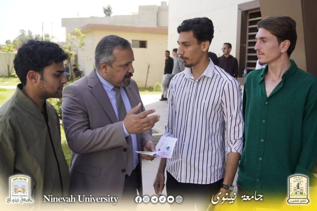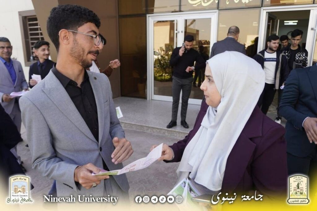 استنادل لتوجيهات السيد رئيس جامعة نينوى الاستاذ الدكتور اسامة اسماعيل المشهداني وبدعم وإشراف السيدة عميد كلية القانون الاستاذ الدكتورة زينة غانم العبيدي ، بحضور السيد معاون العميد للشؤون الادارية الدكتور خلدون فاضل والسيد معاون العميد للشؤون العلمية الدكتور اديب محمد جاسم أقامت وحدة الإرشاد النفسي الجامعي في كلية القانون، بالتعاون مع شعبة حقوق الإنسان في رئاسة جامعة نينوى، ورشة توعوية بعنوان “يوم الأمل للوقاية من الانتحار”، وذلك يوم الاثنين الموافق 6/4/2026، بحضور نخبة من التدريسيين وجمع من الطلبة.