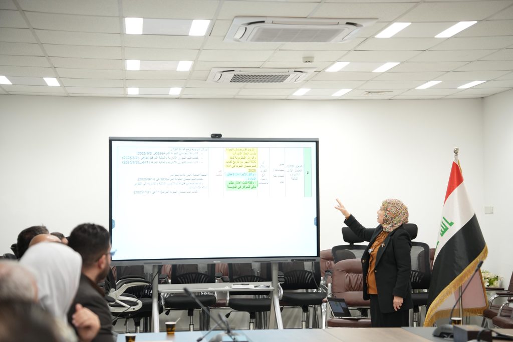 جرى خلال الاجتماع استعراض نسب إنجاز خطط الجودة والاعتماد المؤسسي، ومتابعة تقارير الأداء الأكاديمي والإداري للكليات، فضلاً عن مناقشة آليات تطوير بيئة العمل الأكاديمي بما ينسجم مع معايير الجودة المعتمدة من وزارة التعليم العالي والبحث العلمي.