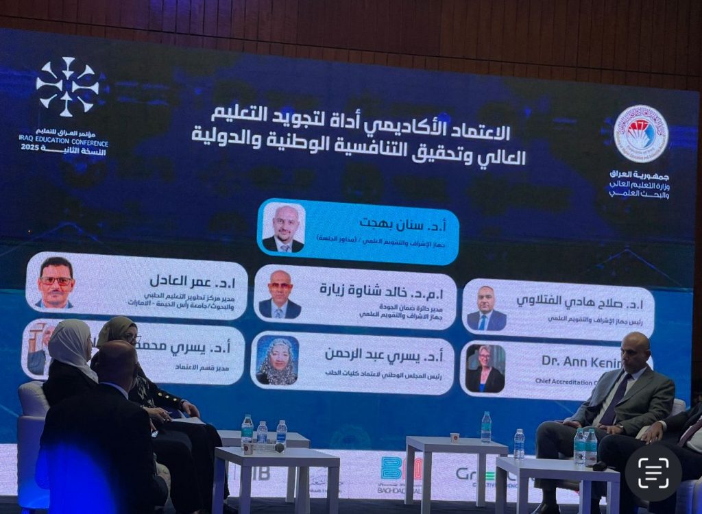 شاركت أ.م.د. صبا عبد السلام حامد السلطان، مديرة قسم ضمان الجودة والأداء الجامعي في جامعة نينوى، في فعاليات مؤتمر العراق للتعليم العالي 2025 بنسخته الثانية، والذي أُقيم على مدى يومين متتاليين.