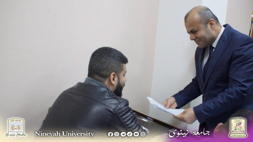 تفقد مساعد رئيس الجامعة للشؤون العلمية، الأستاذ الدكتور جعفر رمضان، سير امتحانات الفصل الخريفي للعام الدراسي 2025-2026 في كلية تكنولوجيا المعلومات. وكان في استقباله السيدة عميد الكلية الأستاذ الدكتور منار يونس كشمولة، وكل من السيد رئيس قسم شبكات الحاسوب والإنترنت الدكتور أزهر صباح عبد العزيز، والسيد رئيس قسم البرمجيات الدكتور علي محسن أحمد.