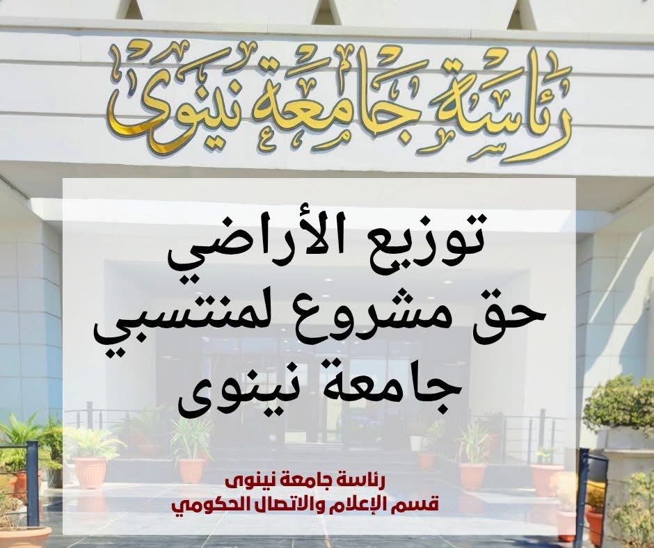 من هنا، فإننا في جامعة نينوى ندعو حكومة نينوى المحلية وبلدية الموصل والجهات ذات العلاقة إلى النظر إلى خصوصية جامعة نينوى لا سيما في الأراضي التي ستُوزع مستقبلا في منطقة العذبة التي هي بالأساس قريبة من موقع المدينة الجامعية (الموقع الرئيس) واتخاذ خطوات عملية لإنصاف لمنتسبي جامعة نينوى، بما ينسجم مع حجم الجامعة، ومكانتها، ودورها الفاعل في خدمة المدينة ومستقبلها.