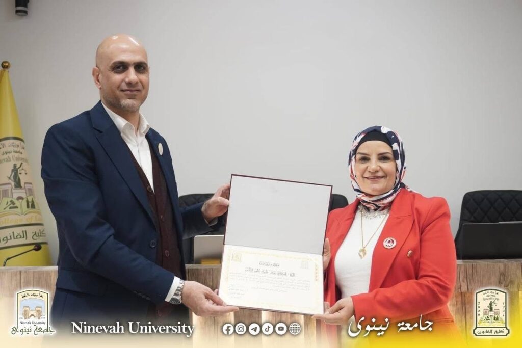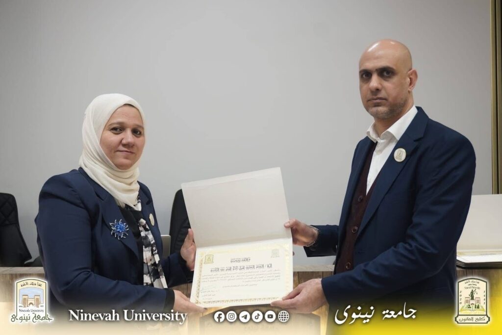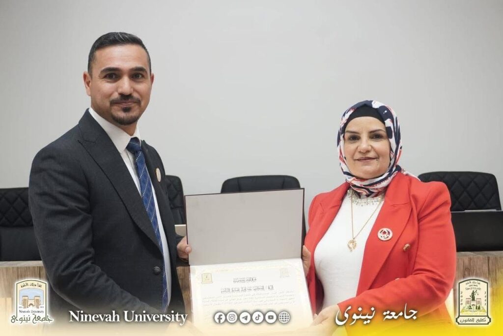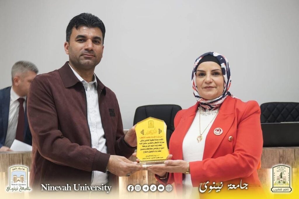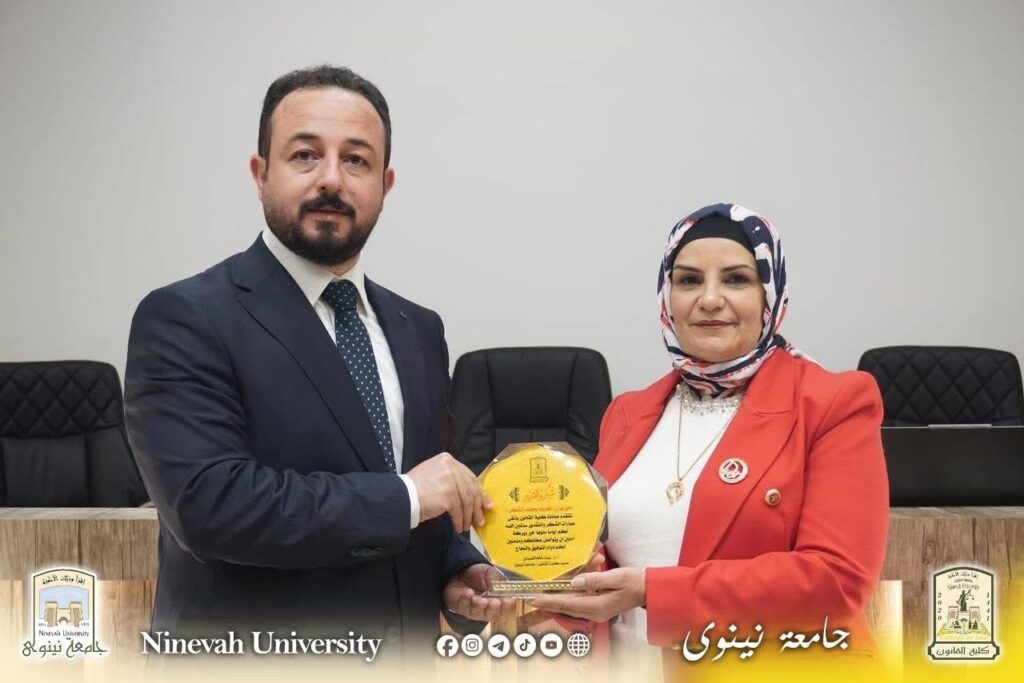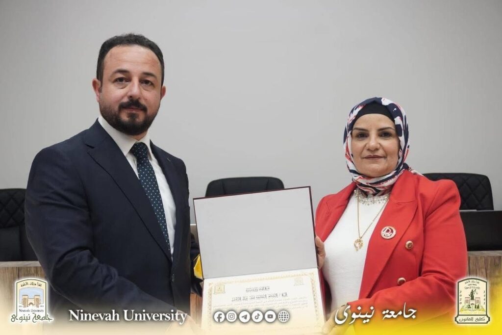 وتضمّنت فعاليات الندوة تكريم الباحثين المشاركين من خلال منحهم دروعًا تقديرية تثمينًا لجهودهم العلمية، فضلًا عن إهدائهم نسخًا من إصدارات مجلة نينوى للدراسات القانونية، دعمًا للحراك العلمي وتشجيعًا للبحث الأكاديمي الرصين.