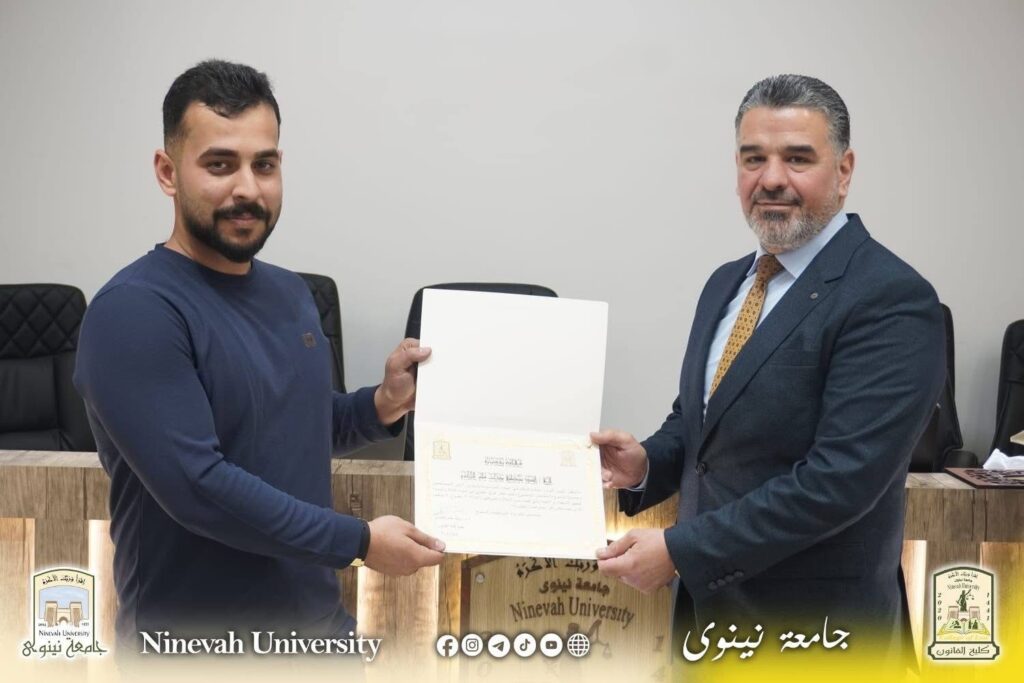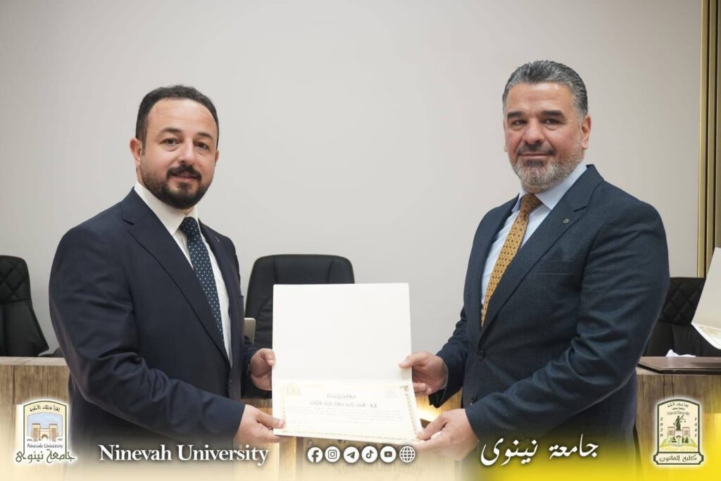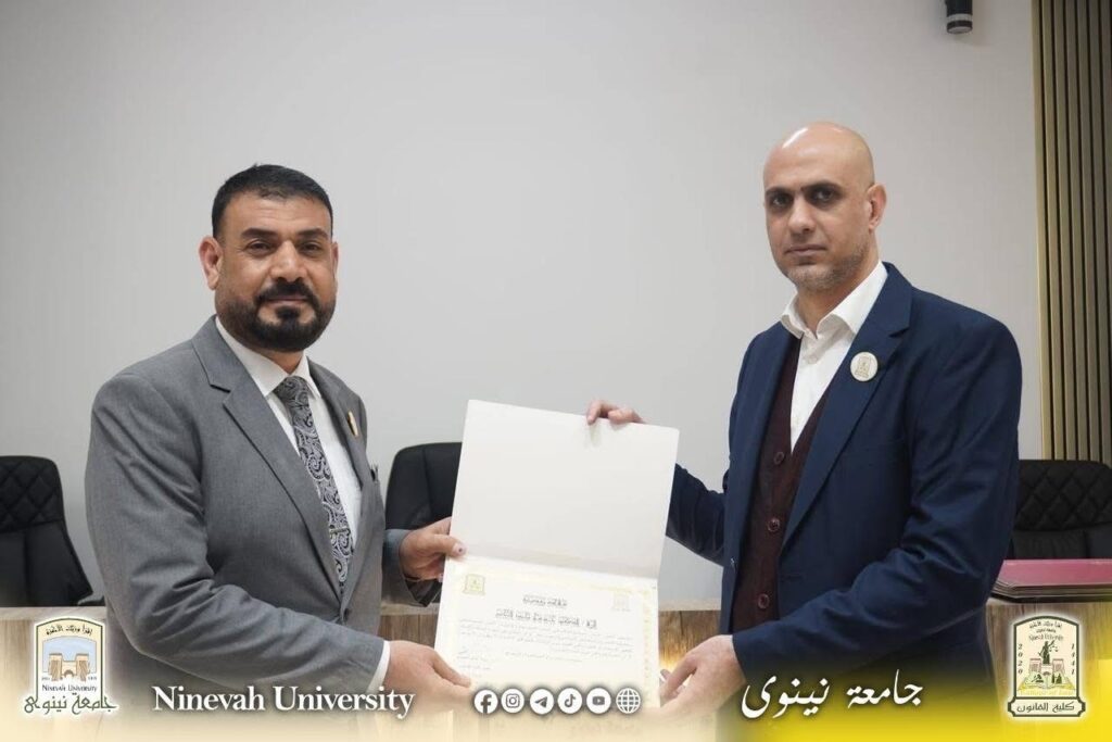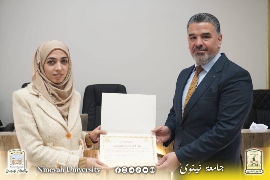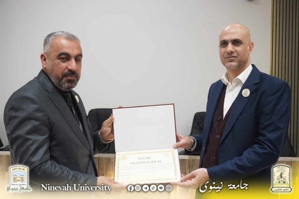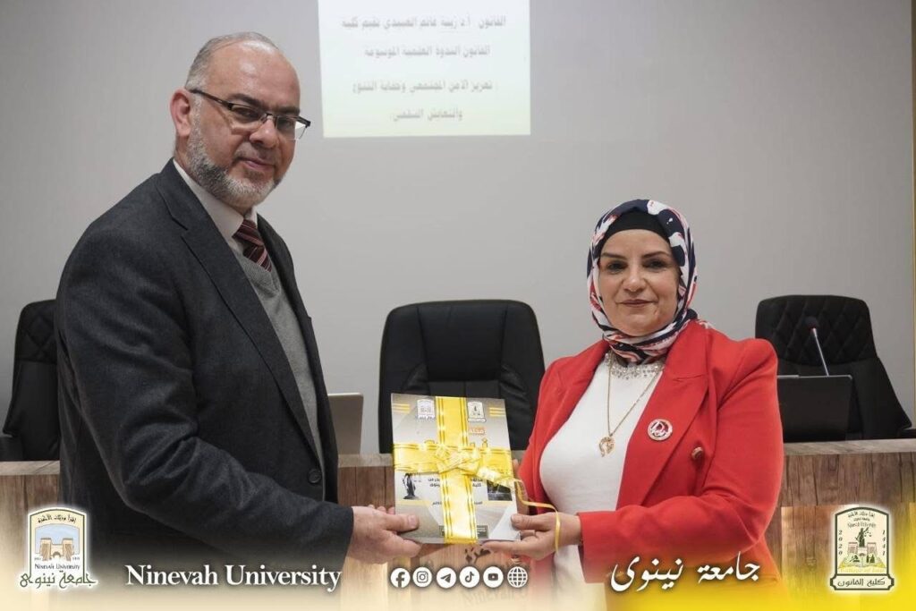 وتضمّنت فعاليات الندوة تكريم الباحثين المشاركين من خلال منحهم دروعًا تقديرية تثمينًا لجهودهم العلمية، فضلًا عن إهدائهم نسخًا من إصدارات مجلة نينوى للدراسات القانونية، دعمًا للحراك العلمي وتشجيعًا للبحث الأكاديمي الرصين.
