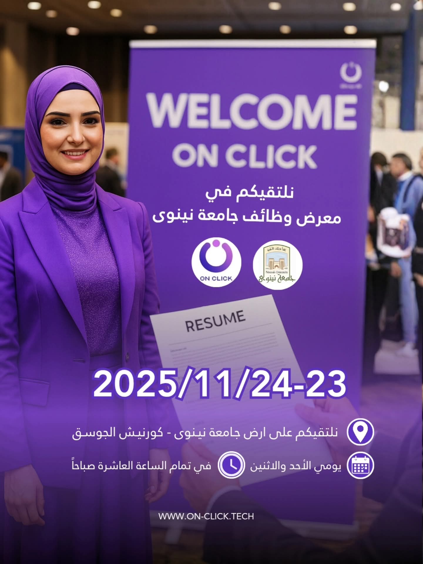 نلتقيكم يوم غد في معرض وظائف جامعة نينوى ٢٠٢٥ ، بمشاركة (١٩) شركة ومؤسسة.