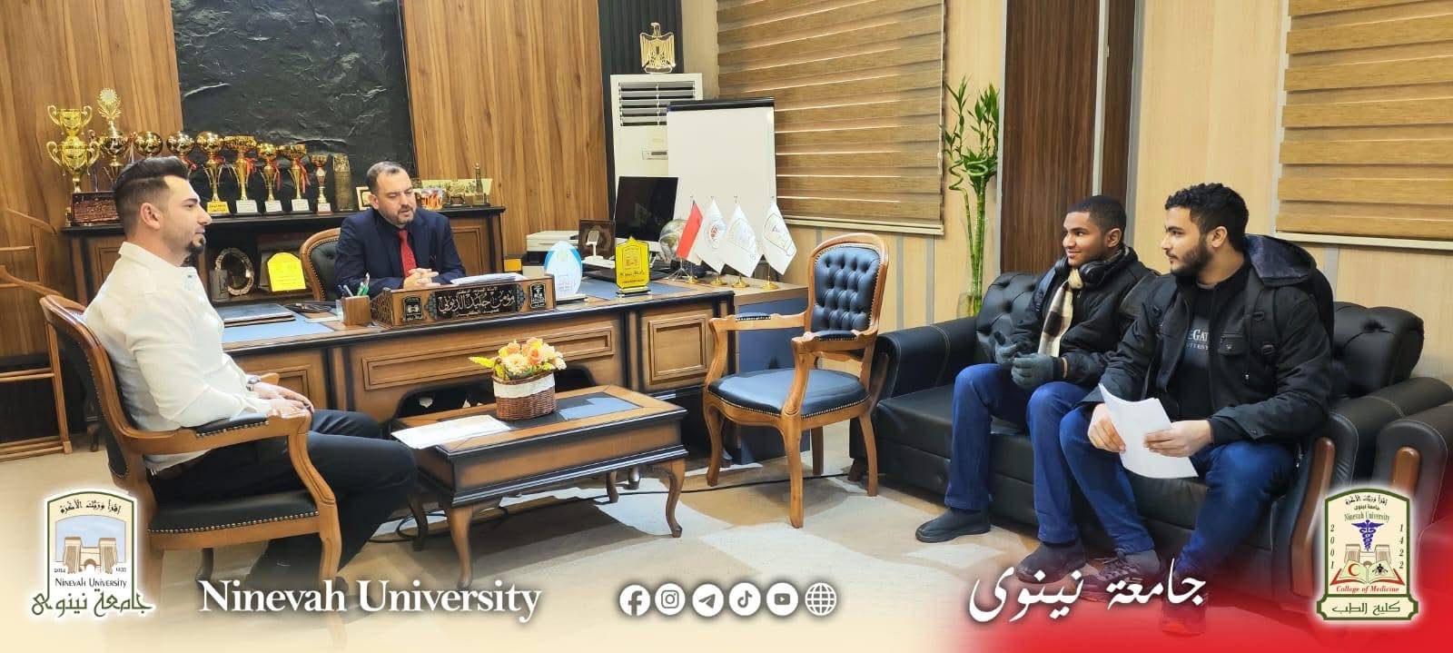 ضمن برنامج «ادرس في العراق» الرامي إلى توسيع آفاق التعاون الأكاديمي وتعزيز العلاقات العلمية بين العراق والدول العربية الشقيقة، استقبل السيد عميد كلية الطب – جامعة نينوى الأستاذ المساعد الدكتور مؤمن جنيد الدبوني الطالبين أحمد عبد الرحمن (جمهورية السودان) وحسين حمدي (جمهورية مصر العربية) وكان للمدرسين المساعدين م.م. مصطفى أحمد عبد الحميد و م.م صفاء...