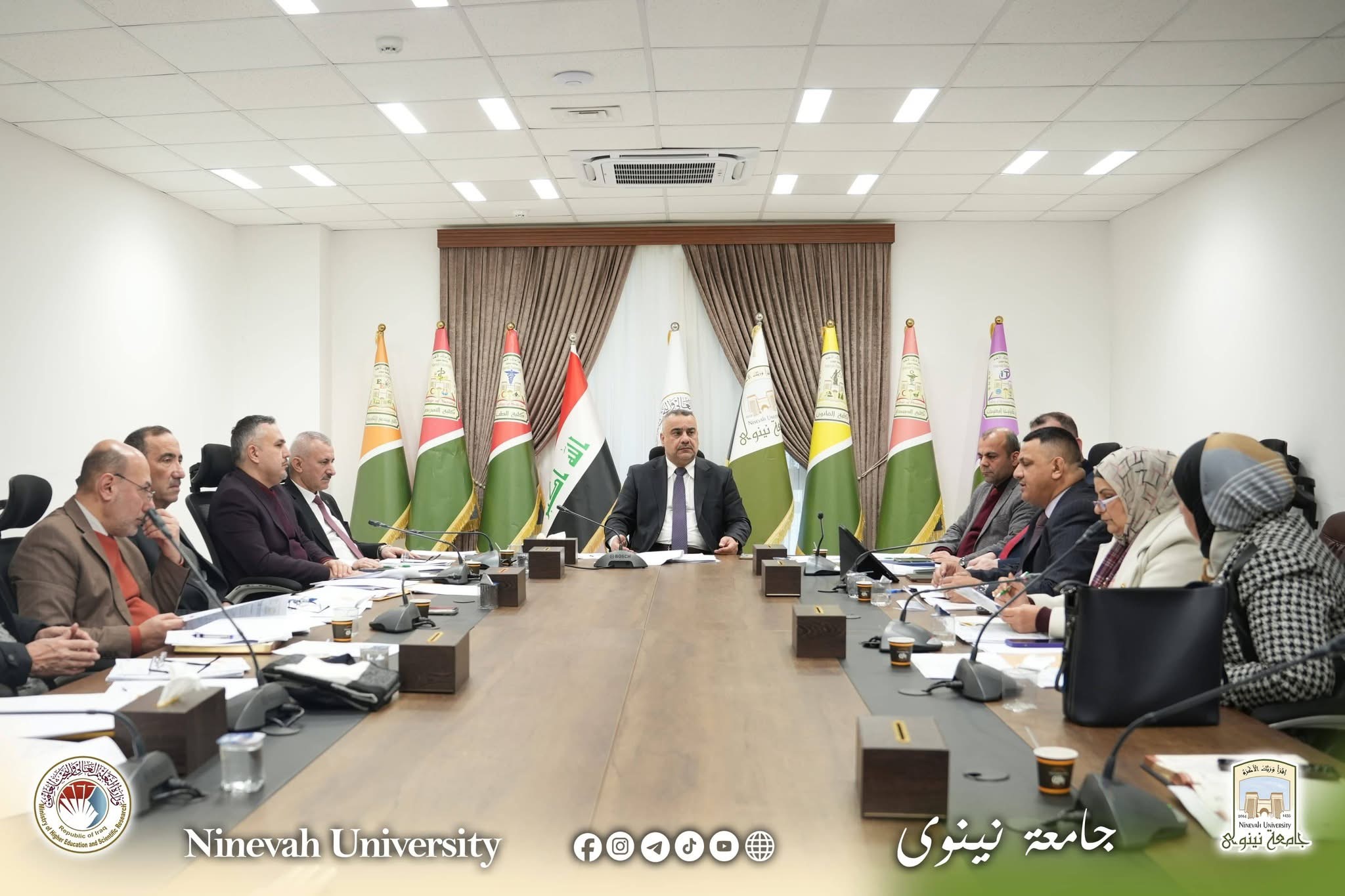 عقد مجلس جامعة نينوى جلسته الثالثة المفتوحة للعام الدراسي 2025–2026 برئاسة السيد رئيس الجامعة الأستاذ الدكتور أسامة المشهداني وبحضور السادة أعضاء المجلس. وفي مستهل الجلسة أكد السيد رئيس الجامعة أهمية المرحلة الحالية وضرورة تكاتف الجهود للارتقاء بالعمل الأكاديمي والإداري في تشكيلات الجامعة. وناقش المجلس عدداً من القضايا المتعلقة بسير العملية التعليمية، أبرزها التأكيد على الالتزام...Read More