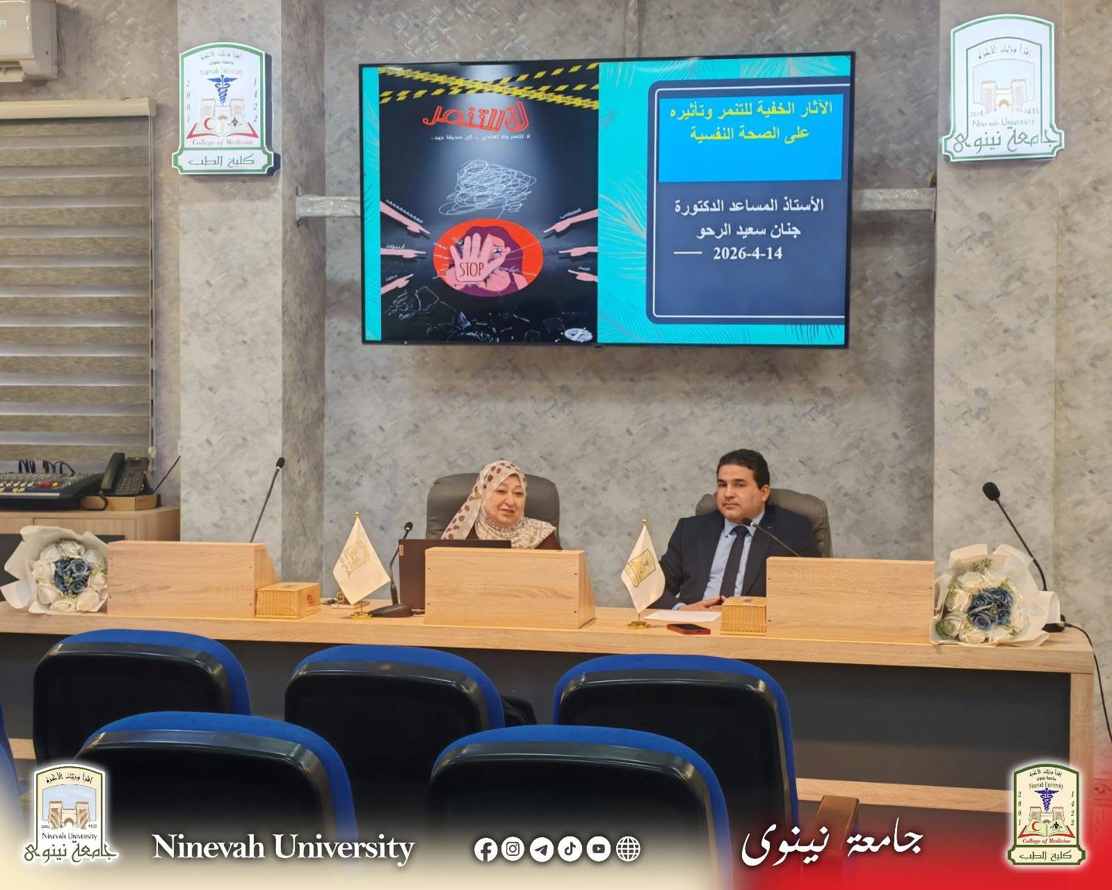 برعاية عميد كلية الطب في جامعة نينوى الأستاذ المساعد الدكتور مؤمن جنيد الدبوني، نظّمت وحدة الإرشاد النفسي ندوة توعوية بعنوان: «نحو بيئة آمنة نفسيًا… معًا ضد التنمر»ناقشت الندوة مفهوم التنمّر وأسبابه وآثاره النفسية والاجتماعية، مع عرض سبل الحدّ منه وتعزيز ثقافة الاحترام داخل الحرم الجامعي، بمشاركة نخبة من التدريسيين المختصين.وشهدت الفعالية تفاعلًا لافتًا من الحضور،...Read More