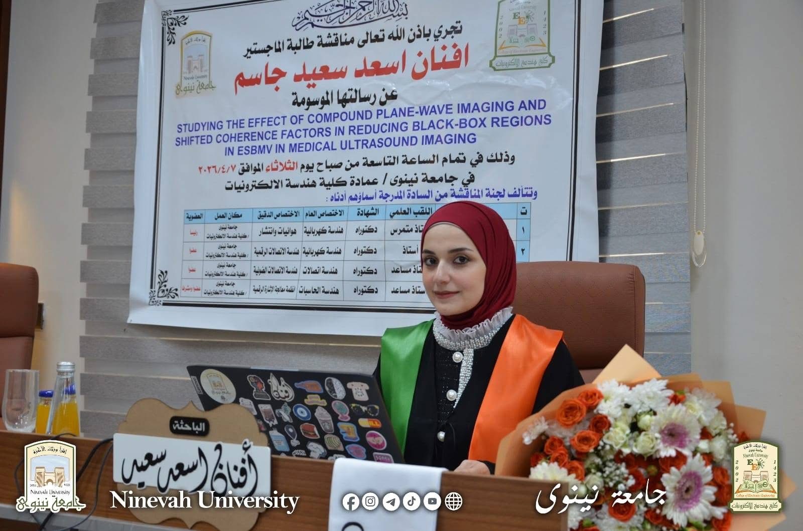نوقشت في جامعة نينوى / كلية هندسة الإلكترونيات / قسم هندسة الاتصالات، رسالة الماجستير الموسومة:“دراسة تأثير التصوير بالموجات المستوية المركّبة وعوامل الاتساق المُزاحة في تقليل مناطق الصندوق الأسود في خوارزمية ESBMV في التصوير الطبي بالموجات فوق الصوتية”(Studying the Effect of Compound Plane-Wave Imaging and Shifted Coherence Factors in Reducing Black-Box Regions in ESBMV in Medical...Read More