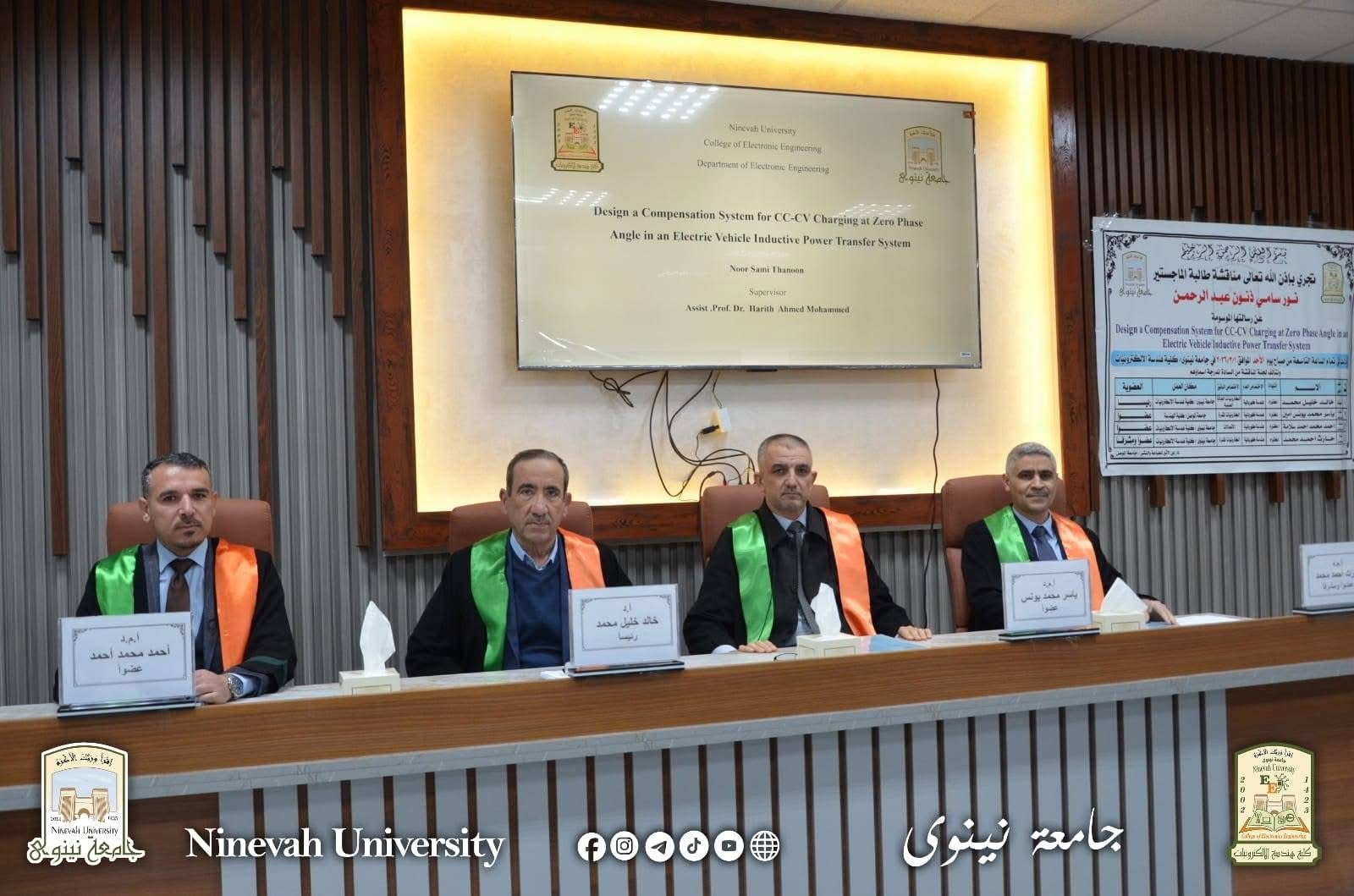 في إطار الحضور الأكاديمي الفاعل لجامعة نينوى وتعزيز التعاون العلمي بين الجامعات العراقية، شارك الأستاذ الدكتور خالد خليل محمد، عميد كلية هندسة الإلكترونيات في جامعة نينوى، في رئاسة لجنة مناقشة أطروحة الدكتوراه المقدَّمة من الطالبة زهراء محمد يونس سعيد في كلية الهندسة / قسم الهندسة الكهربائية بجامعة الموصل، كما شارك الأستاذ المساعد الدكتور حارث أحمد...Read More