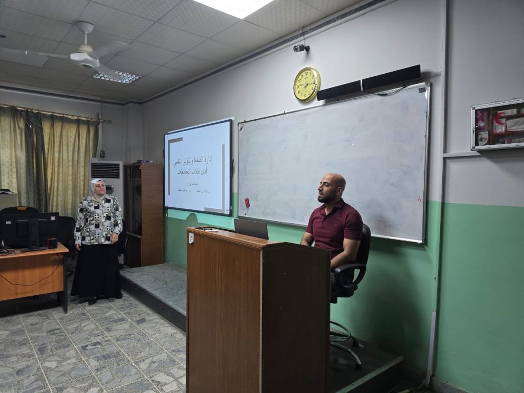 انسجامًا مع توجيهات السيد رئيس جامعة نينوى الأستاذ الدكتور أسامة المشهداني ، وبإشراف مباشر من السيد عميد الكلية الأستاذ الدكتور خالد خليل محمد، نظّمت وحدة الإرشاد النفسي والتوجيه التربوي في كلية هندسة الإلكترونيات ورشة توعوية بعنوان “إدارة التوتر والضغوطات النفسية لدى الطلبة”، وذلك ضمن خطة نشاطاتها للعام الدراسي الحالي، بهدف تعزيز الصحة النفسية لدى الطلبة وتنمية مهاراتهم في التعامل الإيجابي مع ضغوط الحياة الجامعية.