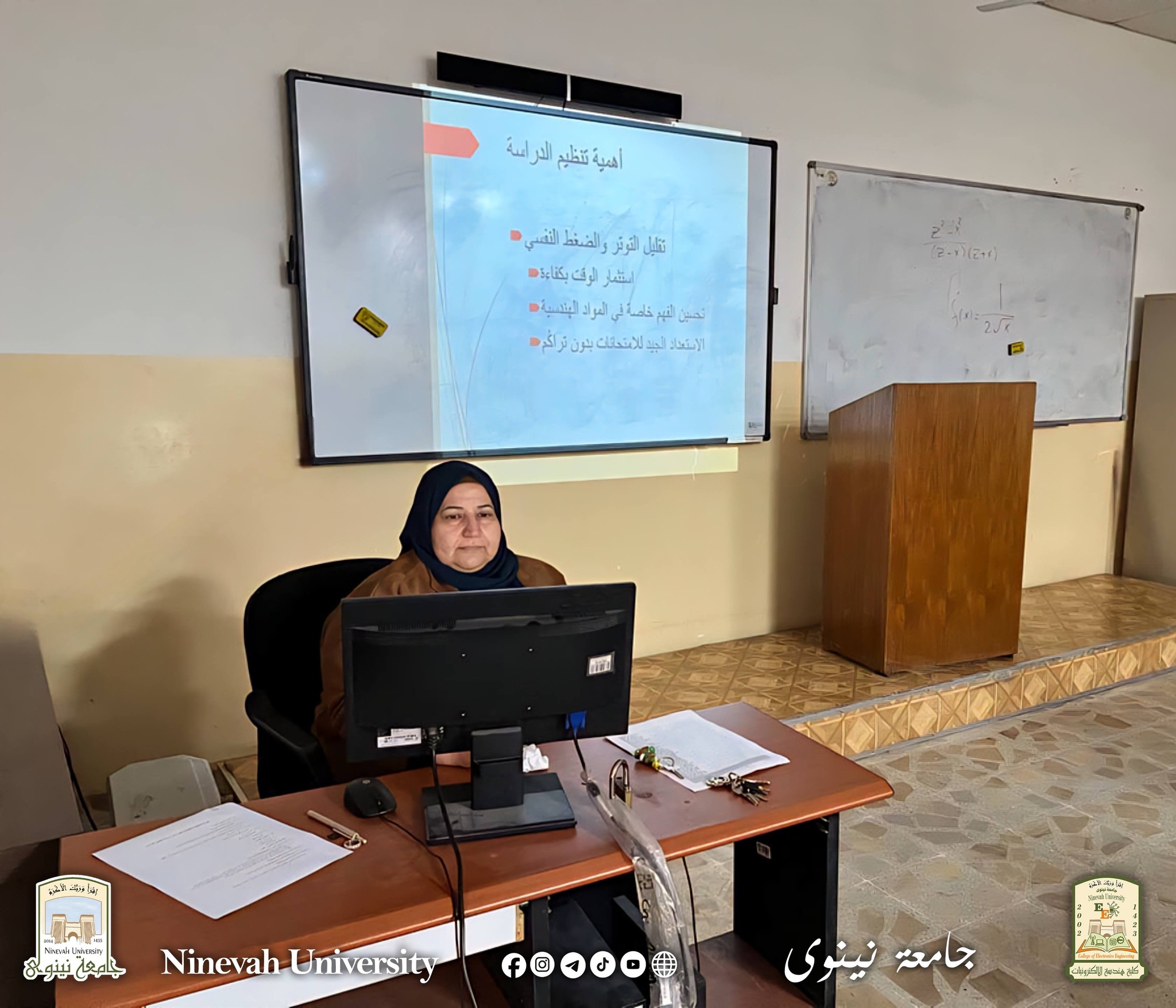 ضمن إطار حرص كلية هندسة الإلكترونيات على دعم طلبتها أكاديميًا ونفسيًا، نظّمت وحدة الإرشاد النفسي والتوجيه التربوي في الكلية ورشة توعوية بعنوان «تنظيم الدراسة اليومية والأسبوعية لتخفيف الضغط النفسي أيام الامتحانات»، وذلك ضمن خطة نشاطاتها للعام الدراسي الحالي.