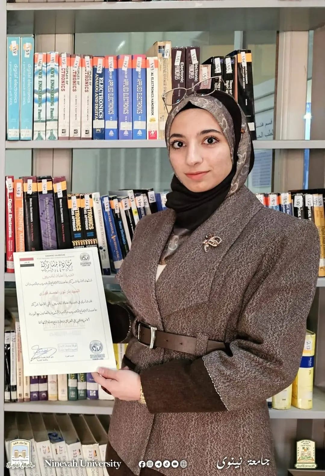 Student Noor Ahmed Fawzi from the Department of Biomedical Engineering at the College of Electronic Engineering – University of Ninevah achieved a distinguished academic accomplishment through her participation in the International Training of Trainers (TOT) Program, organized in cooperation between the American Board in Iraq and Creative Capital International Company. The student was awarded an...Read More